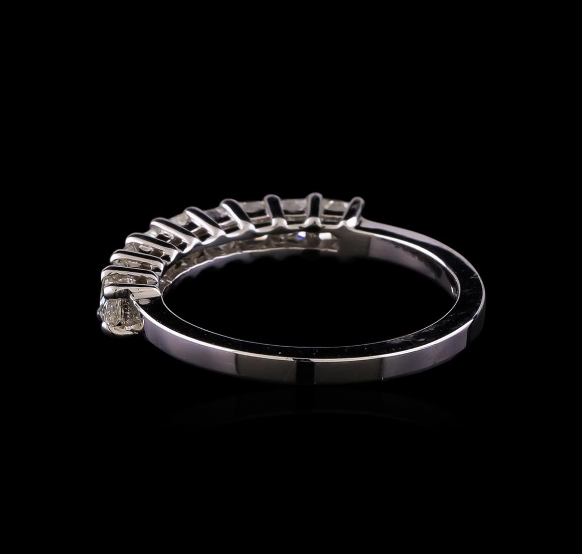 One ladies anniversary ring featuring: 14KT white gold weighing 2.60 grams containing nine diamonds.