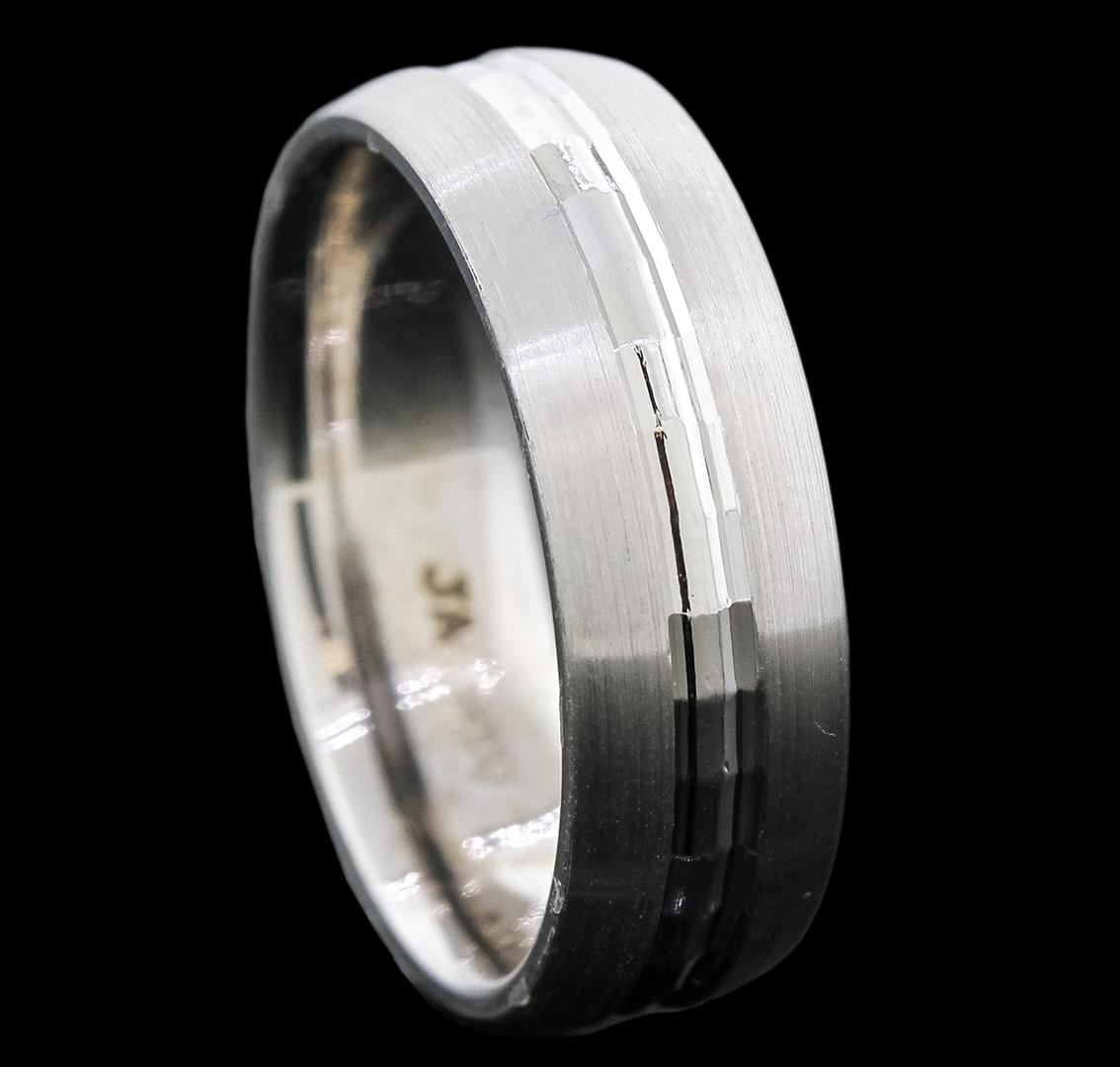 One gents ring featuring: 14KT white gold weighing 10.20 grams.