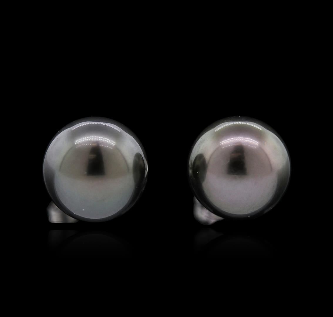 One pair of earrings featuring: 14KT white gold weighing 2.26 grams containing two 9.00 mm black fresh water pearls.