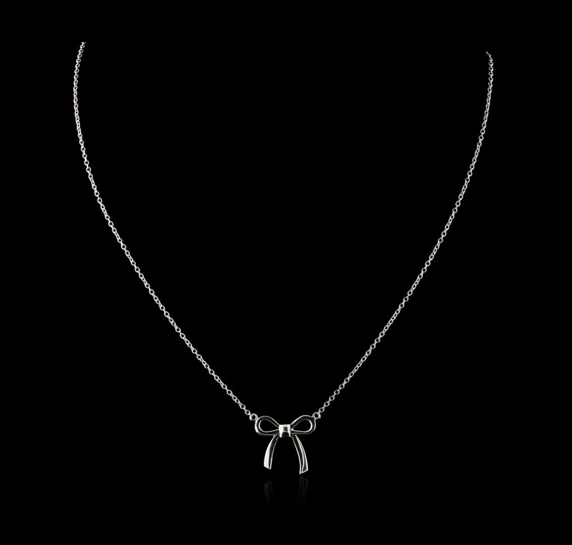 One bow necklace featuring: 14KT white gold weighing 3.50 grams