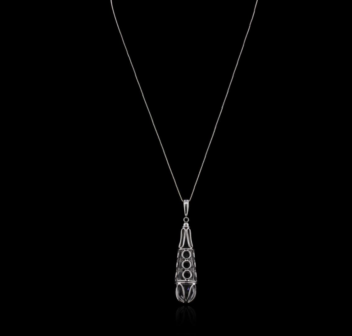 One chandelier crystal pendant with chain featuring: 14KT white gold weighing 9.46 grams.