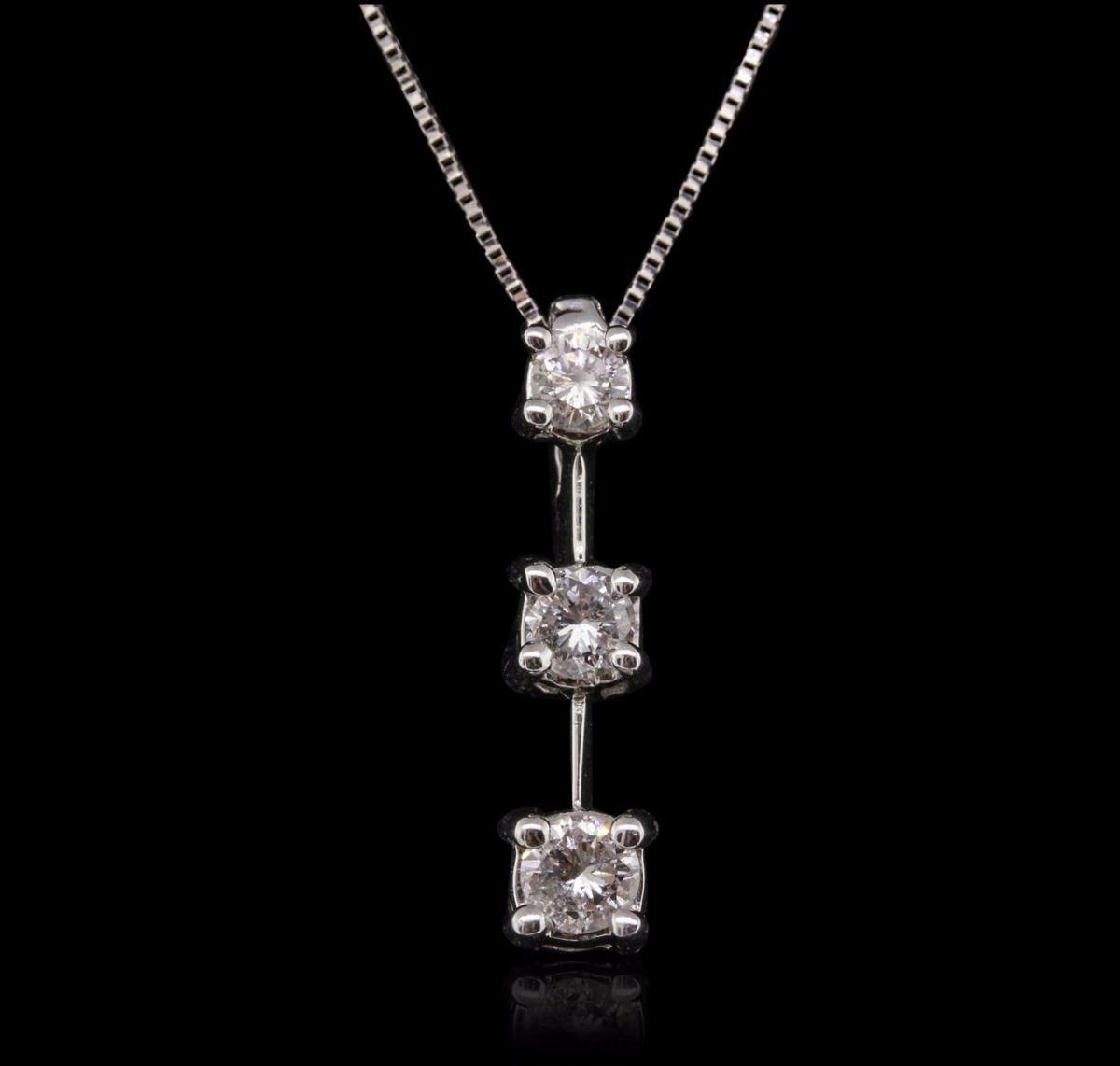 One pendant with chain featuring: 14KT White Gold with a total weight of 2.80 grams, and Diamonds.