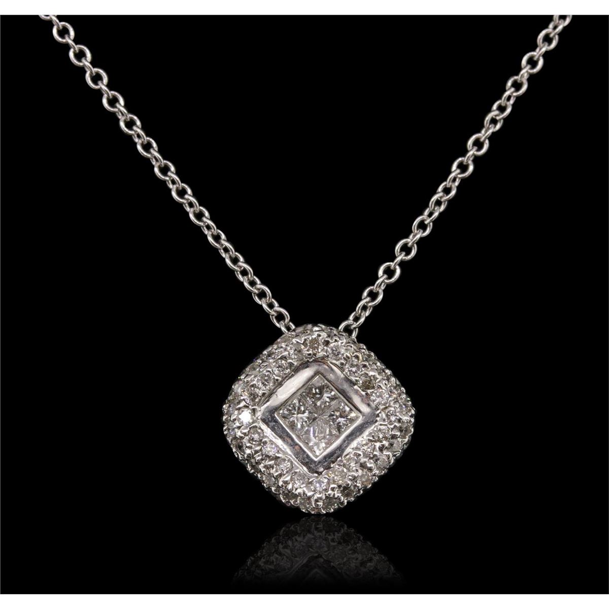 One pendant with chain featuring: 14KT White Gold with a total weight of 2.80 grams, and Diamonds.