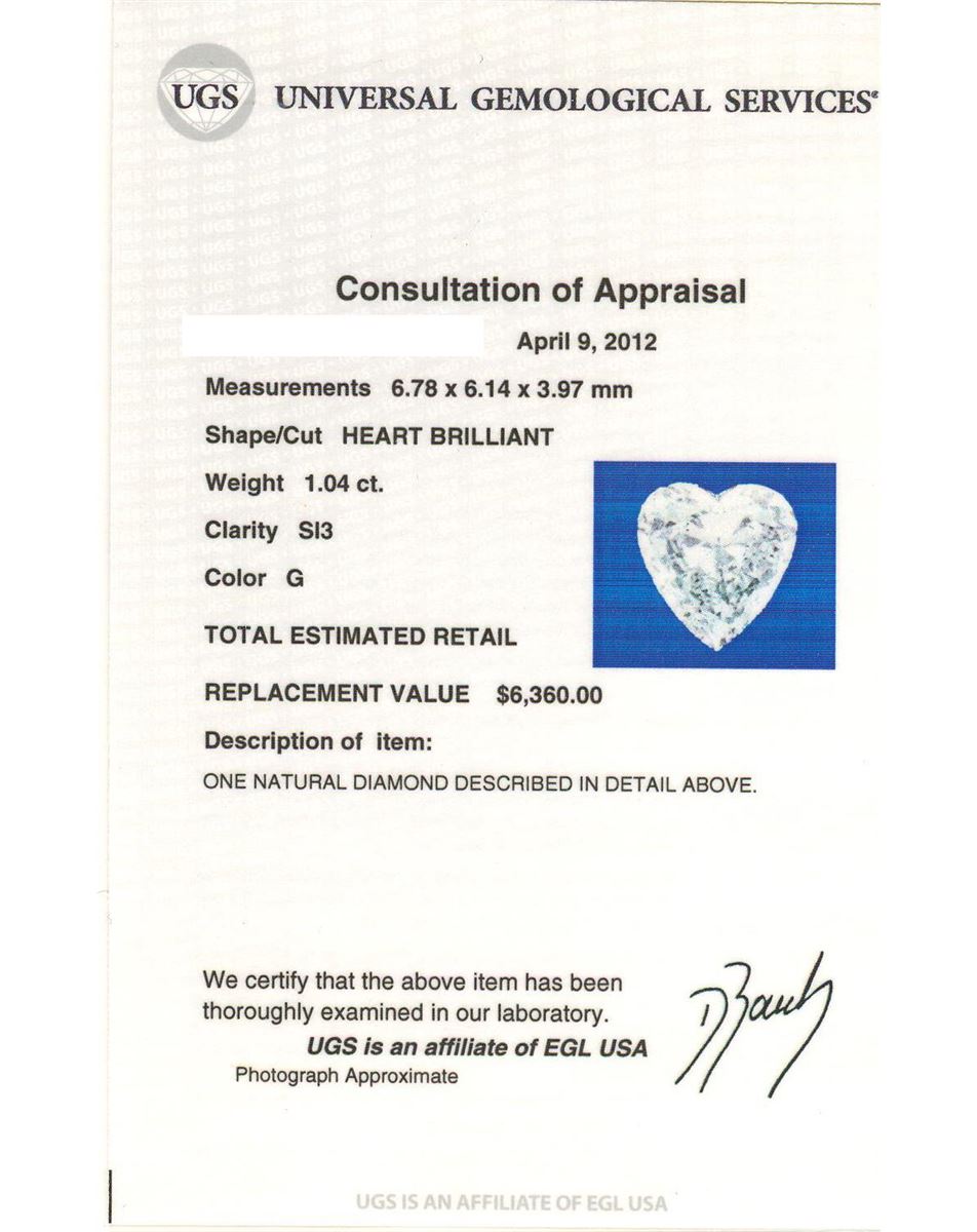 Regarding Appraised Jewelry, Watches and Loose Stones –
