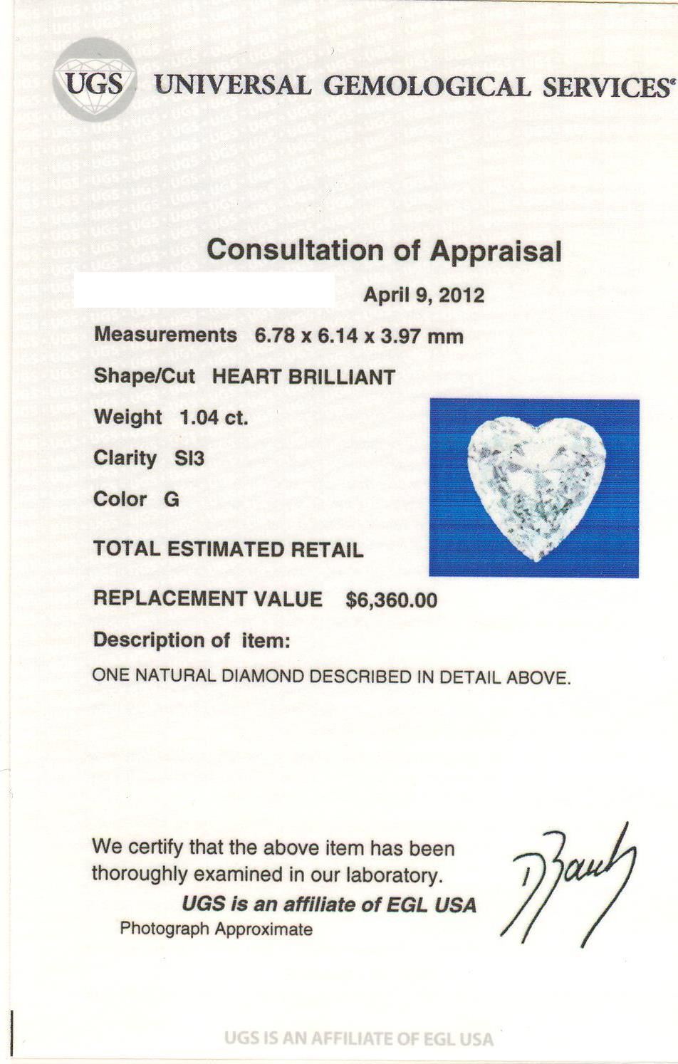 One ring featuring: 14KT White Gold with a total weight of 2.61 grams, diamonds with a total weight of 0.49ctw, and one center diamond with a total weight of 1.04ct. Center diamond EGL USA Appraised.