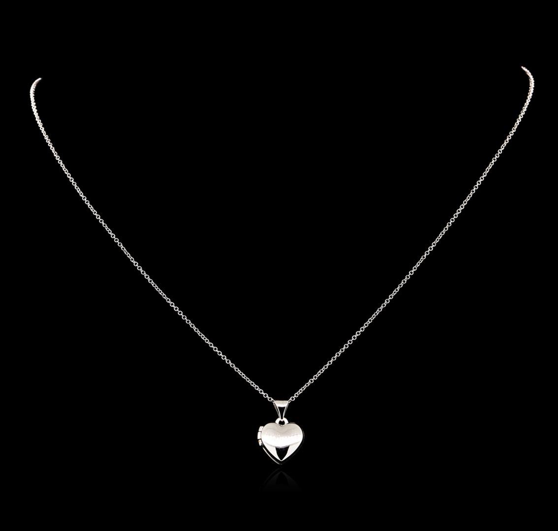 One heart shape locket pendant with chain featuring: 14KT white gold weighing 1.70 grams.