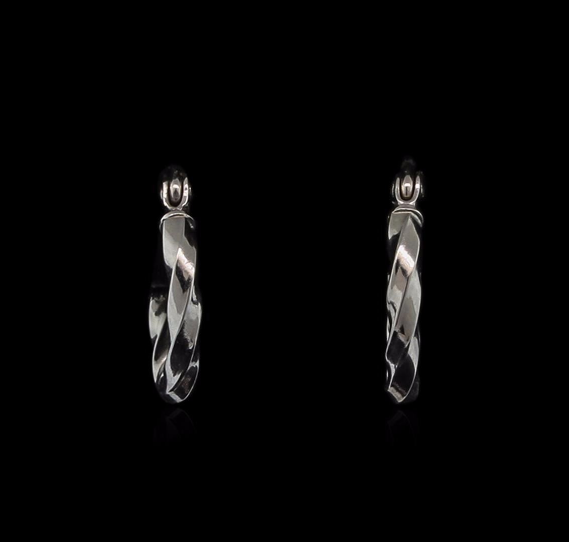 One pair of hoop earrings featuring: 14KT white gold weighing 0.80 grams.