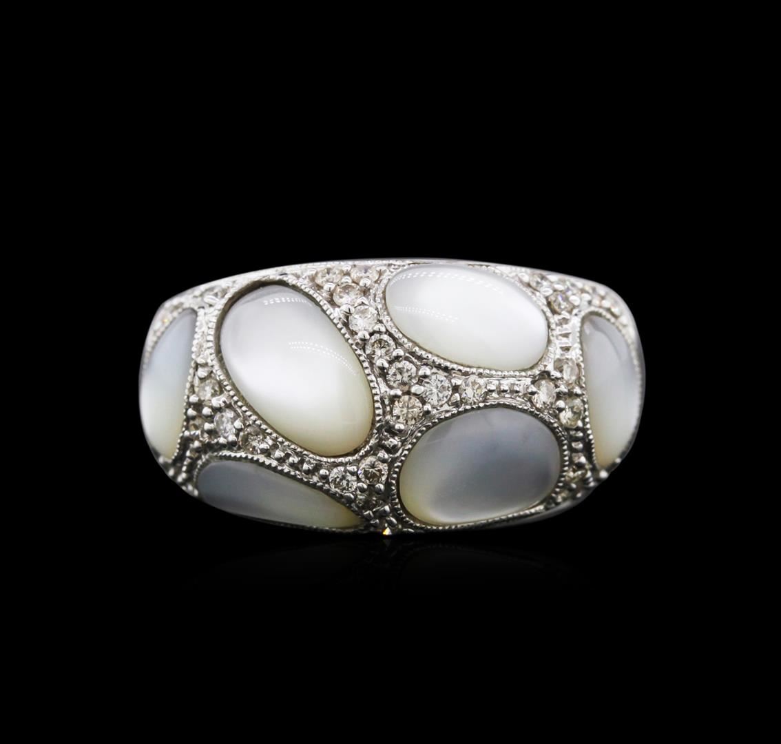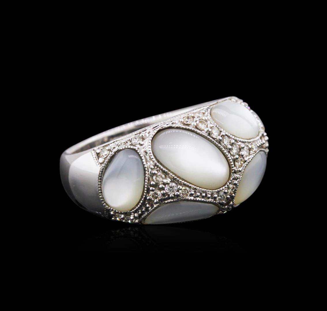 One ring featuring: 14KT white gold weighing 7.93 grams containing 33 round diamonds with a total weight of 0.33ct including six white mother of pearl inlays.