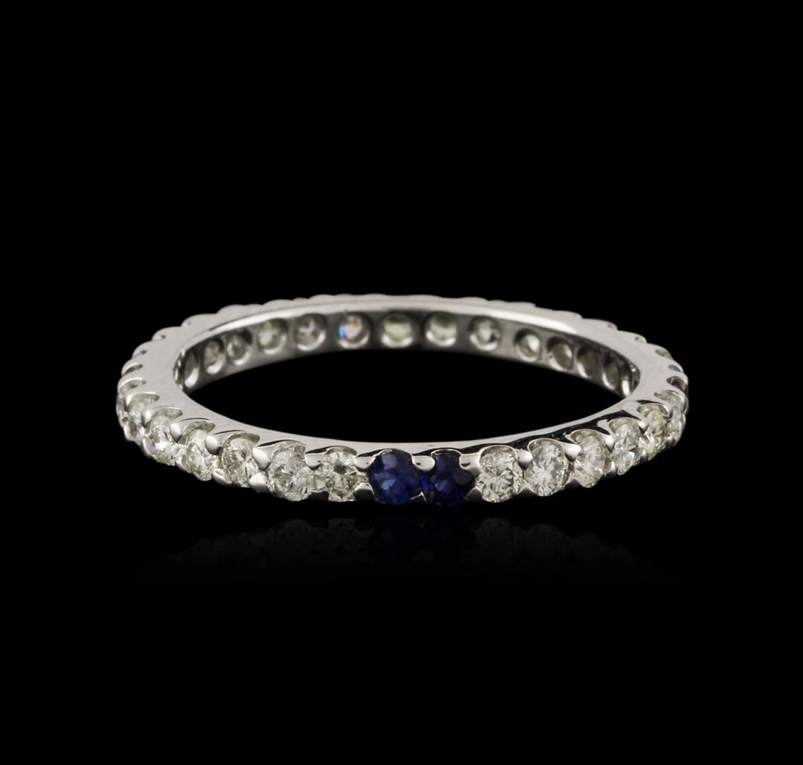 One ring featuring: 14KT white gold weighing 1.72 grams containing topaz with a total weight of 0.06ct, garnet with a total weight of 0.03ct, sapphire with a total weight of 0.03ct, and diamonds with a total weight of 0.50ct.