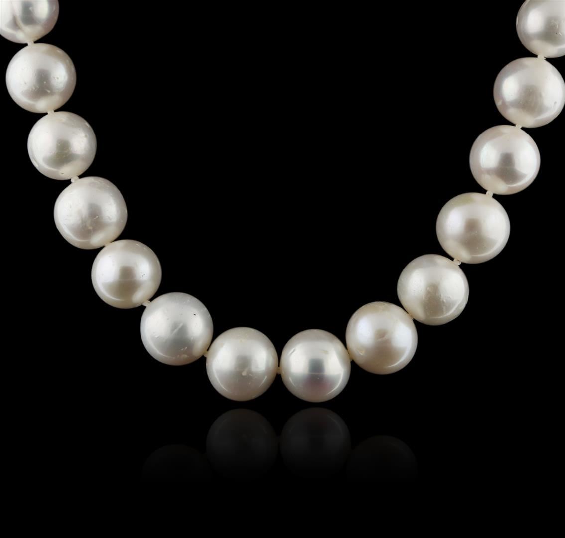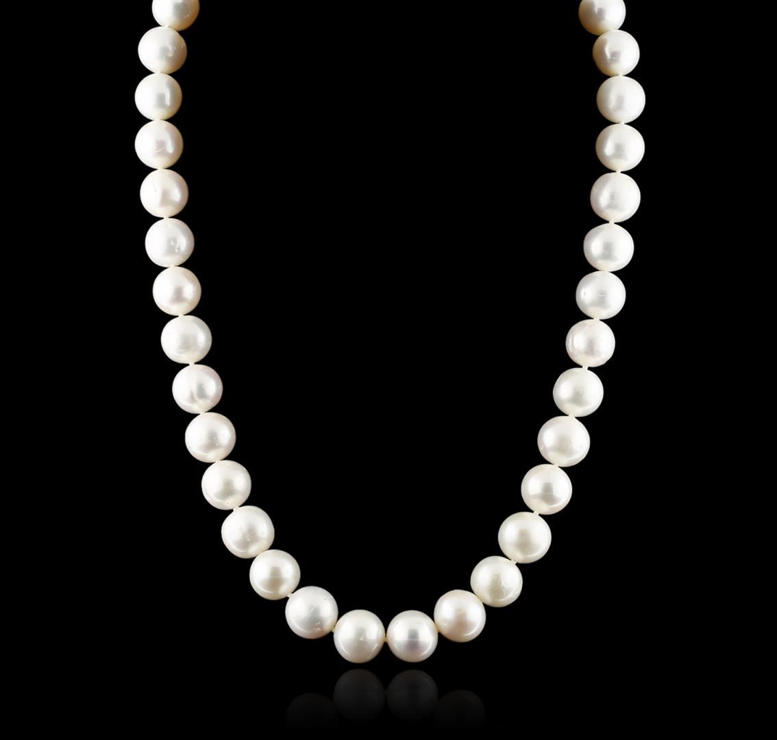 One necklace featuring: 14KT white gold weighing 69.56 grams containing 38 fresh water pearls measuring 11mm.