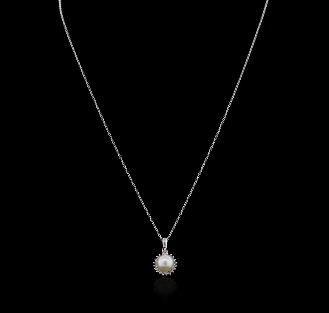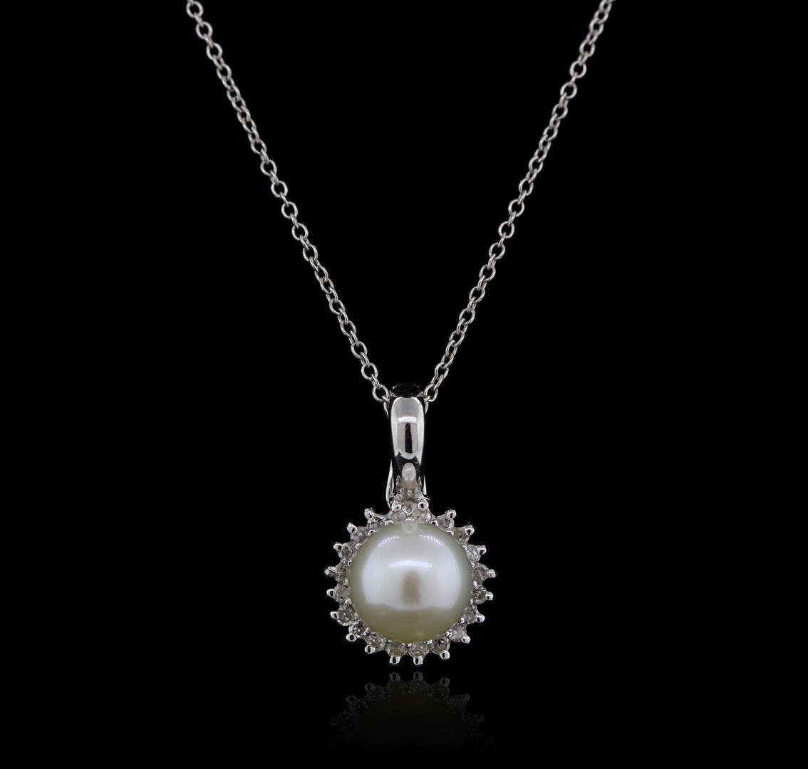One pendant with chain featuring: 14KT white gold weighing 1.60 grams containing one pearl and diamonds with a total weight of 0.10ct.