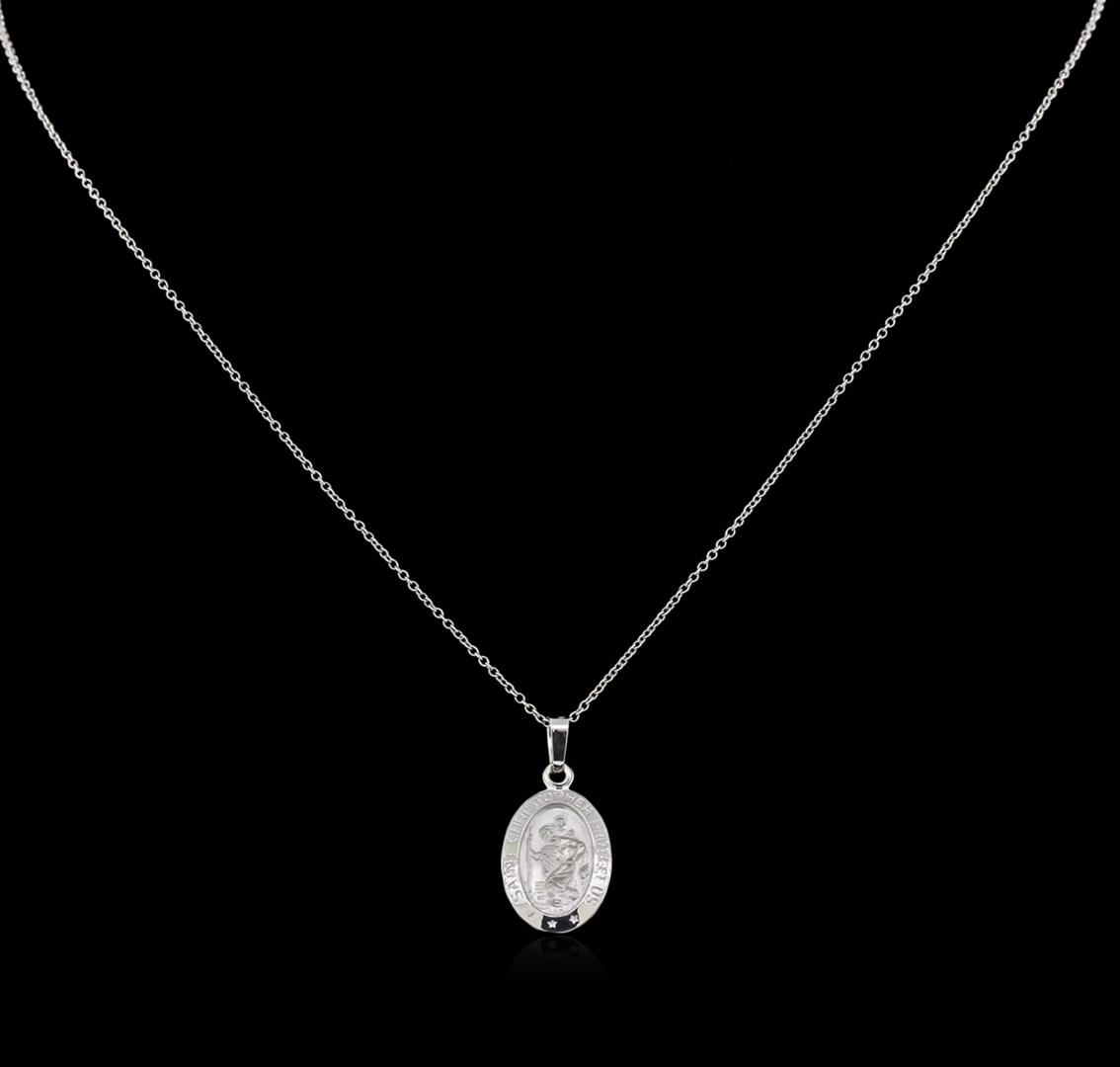 One religious pendant with chain featuring: 14KT white gold weighing 2.03 grams. The pendant reads "Saint Christopher Protect Us".