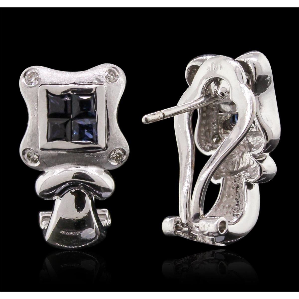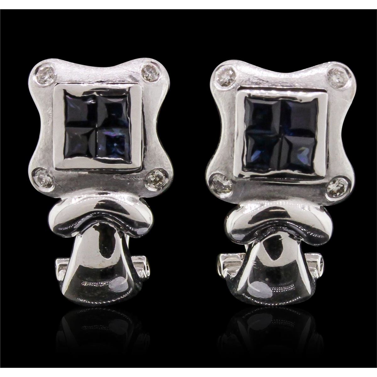 One pair of earrings featuring: 14KT White Gold with a total weight of 7.50 grams, Sapphire, and diamonds with a total weight of 0.08ctw.