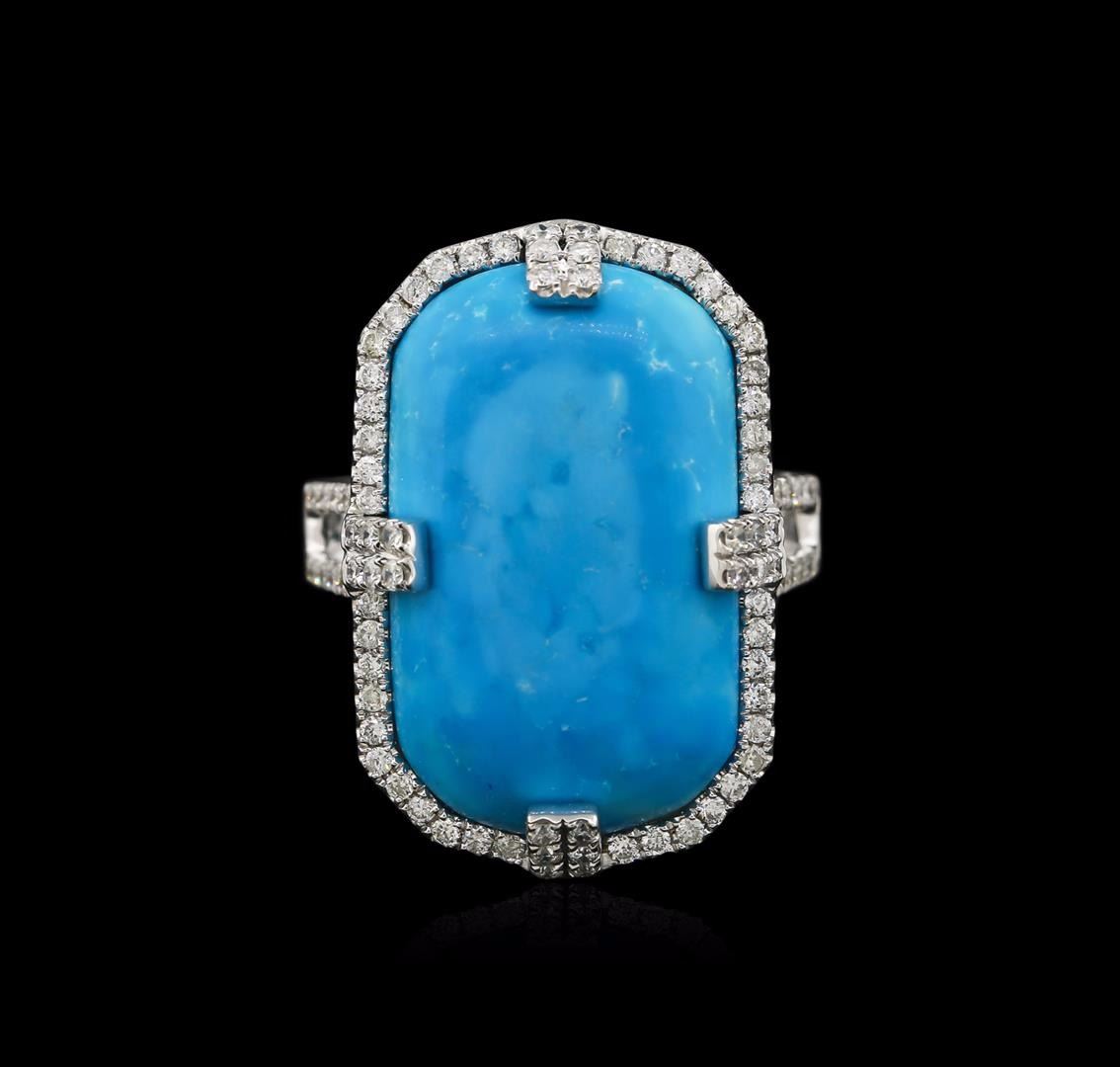 One ring featuring: 14KT white gold weighing 5.40 grams containing one turquoise and 96 round diamonds with a total weight of 0.62ct.