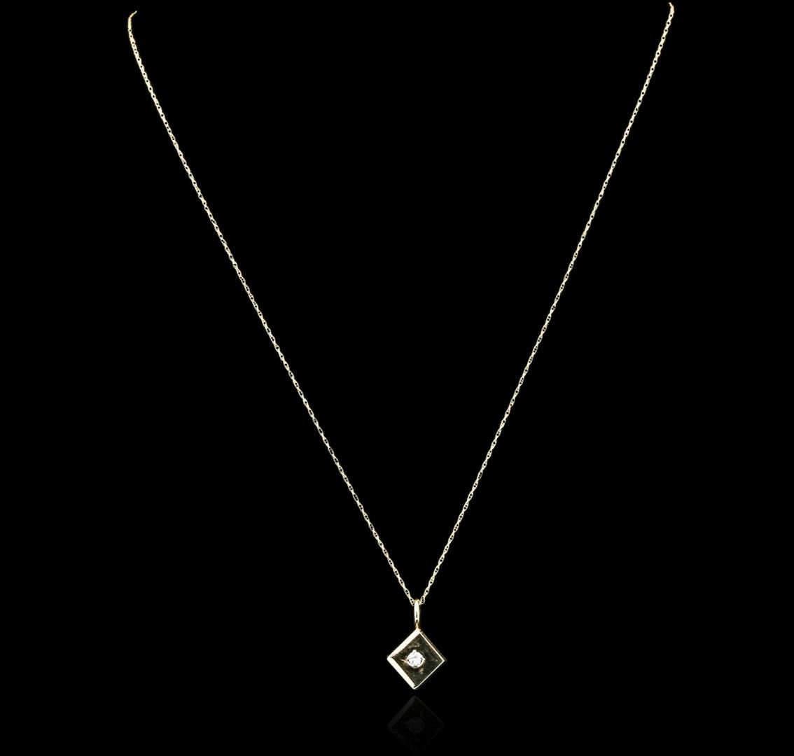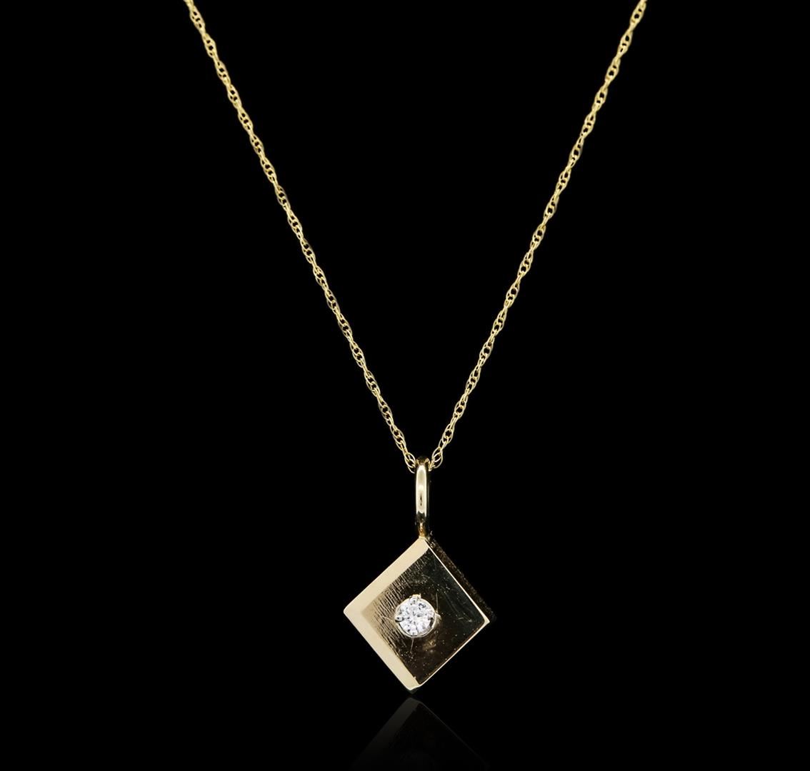 One pendant with chain featuring: 14KT yellow gold weighing 2.50 grams containing one round diamond with a total weight of 0.02ct.