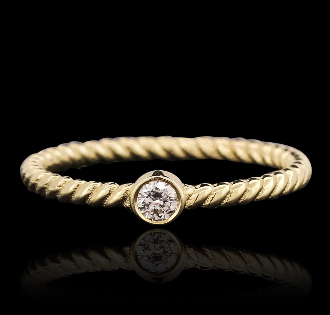 One rope style ring featuring: 14KT yellow gold weighing 1.50 grams containing one round cut diamond with a total weight of 0.09ct.