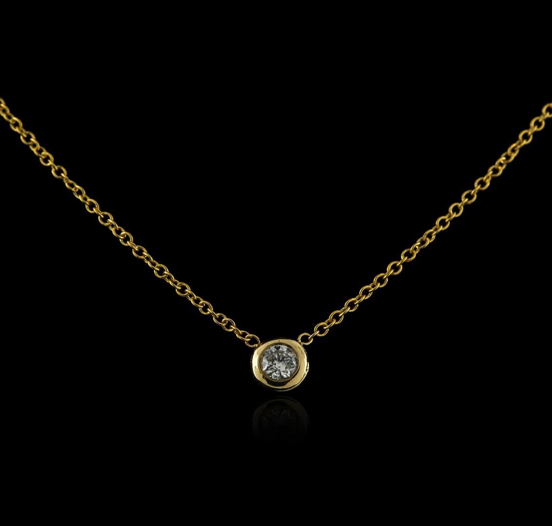 One solitaire necklace featuring: 14KT yellow gold weighing 1.65 grams containing one diamond with a total weight of 0.09ct.