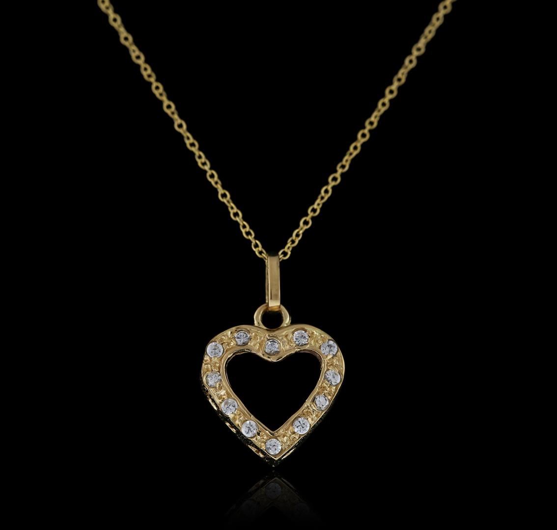 One heart pendant with chain featuring: 14KT yellow gold weighing 2.56 grams containing diamonds with a total weight of 0.10ct.