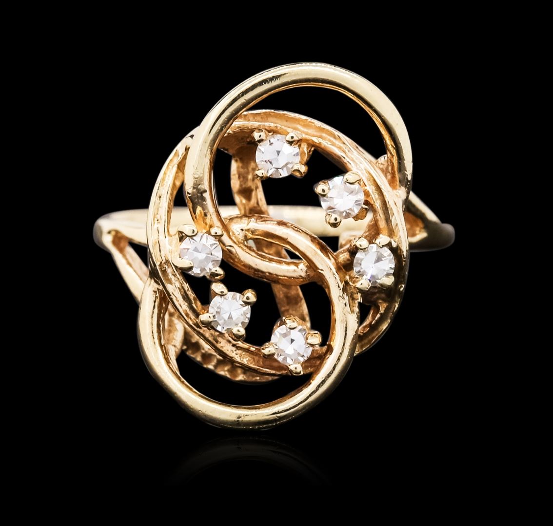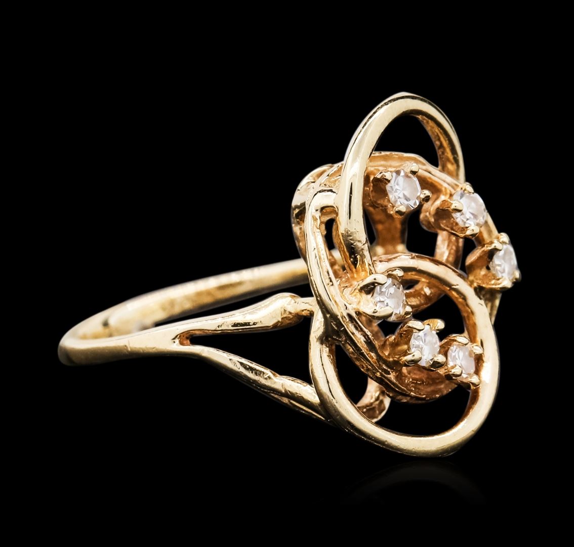 One ring featuring: 14KT yellow gold weighing 2.80 grams containing round cut diamonds with a total weight of 0.10cts.