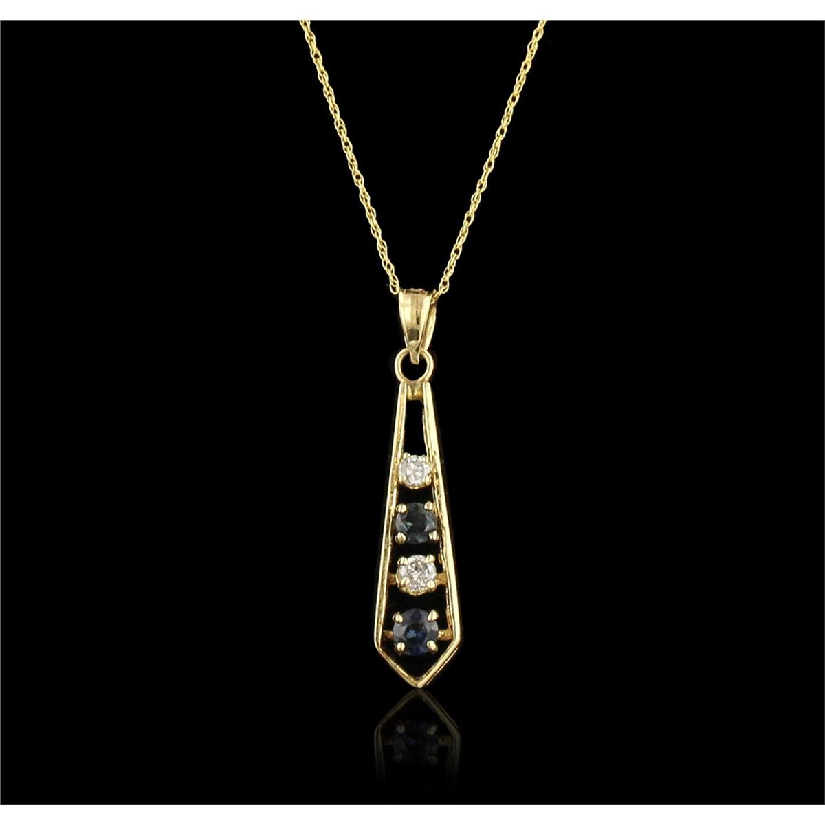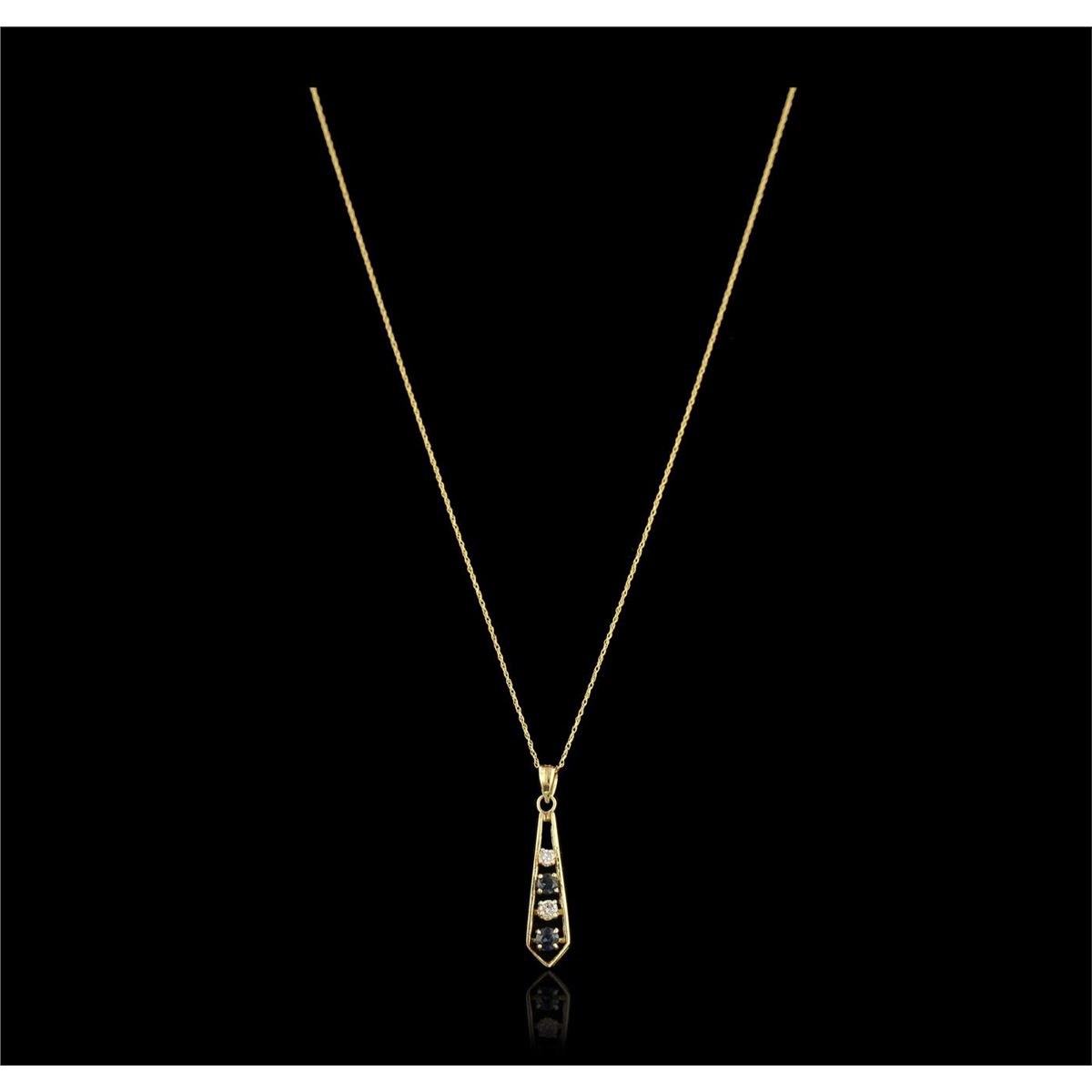 One pendant with chain featuring: 2.00 grams of 14KT yellow gold, 0.10cts of sapphires and 0.10cts of diamonds.