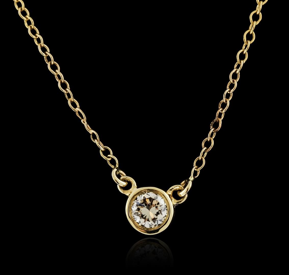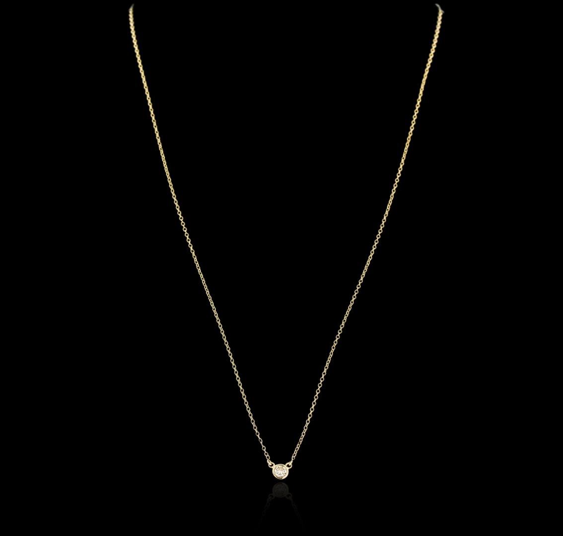 One solitaire necklace featuring: 14KT yellow gold weighing 2.10 grams containing one bezel set round diamond with a total weight of 0.15ct.
