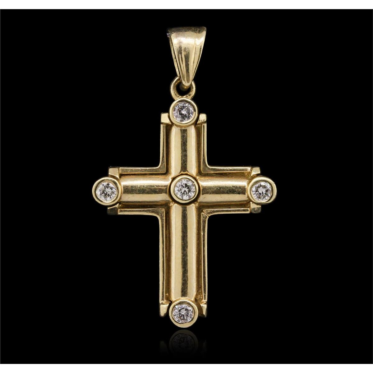 One cross pendant featuring: 14KT yellow gold weighing 6.30 grams containing five round diamonds with a total weight of 0.20ct.