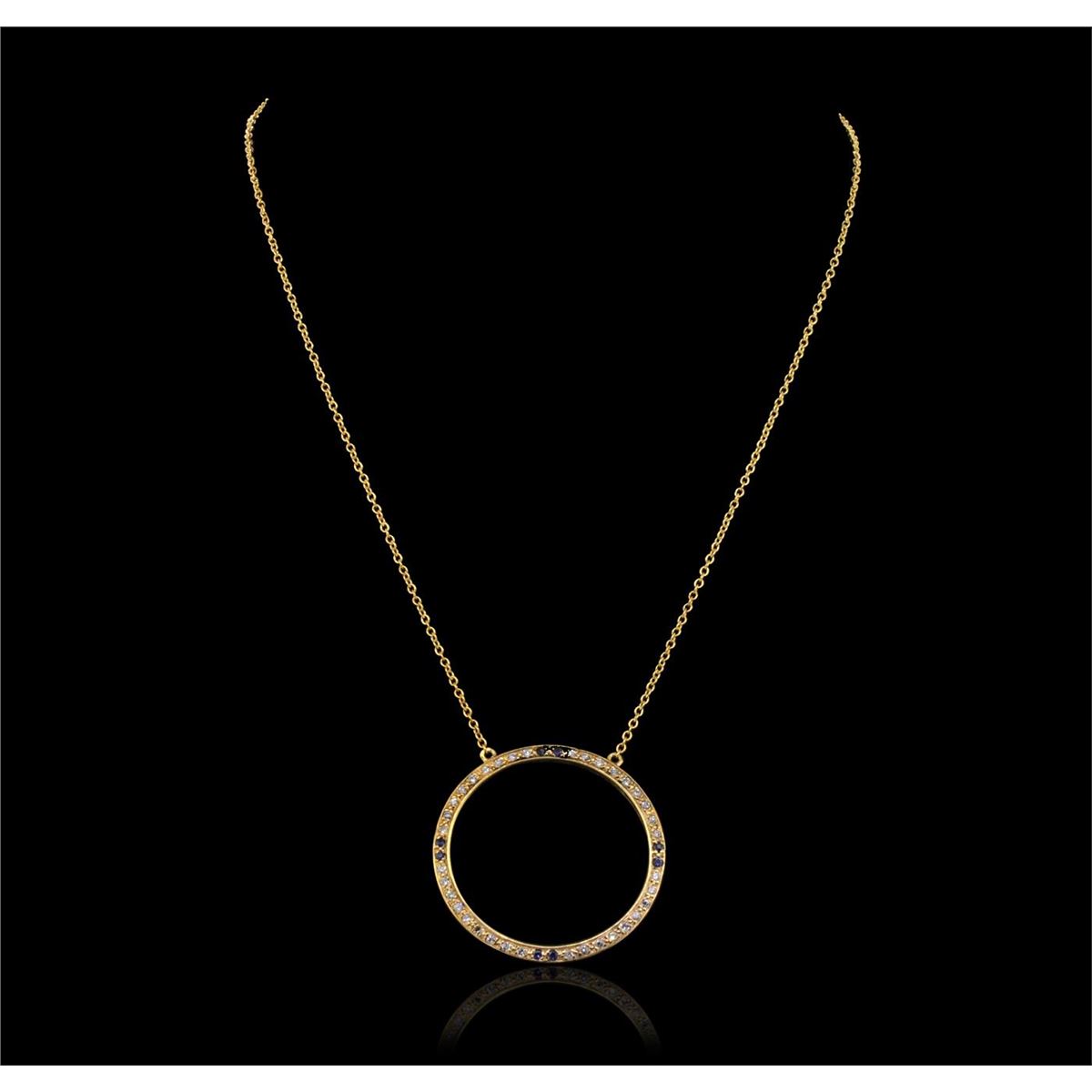 One pendant with chain featuring: 14KT yellow gold with a total weight of 7.50 grams, sapphire with a total weight of 0.20ctw, and diamonds with a total weight of 0.80ctw.