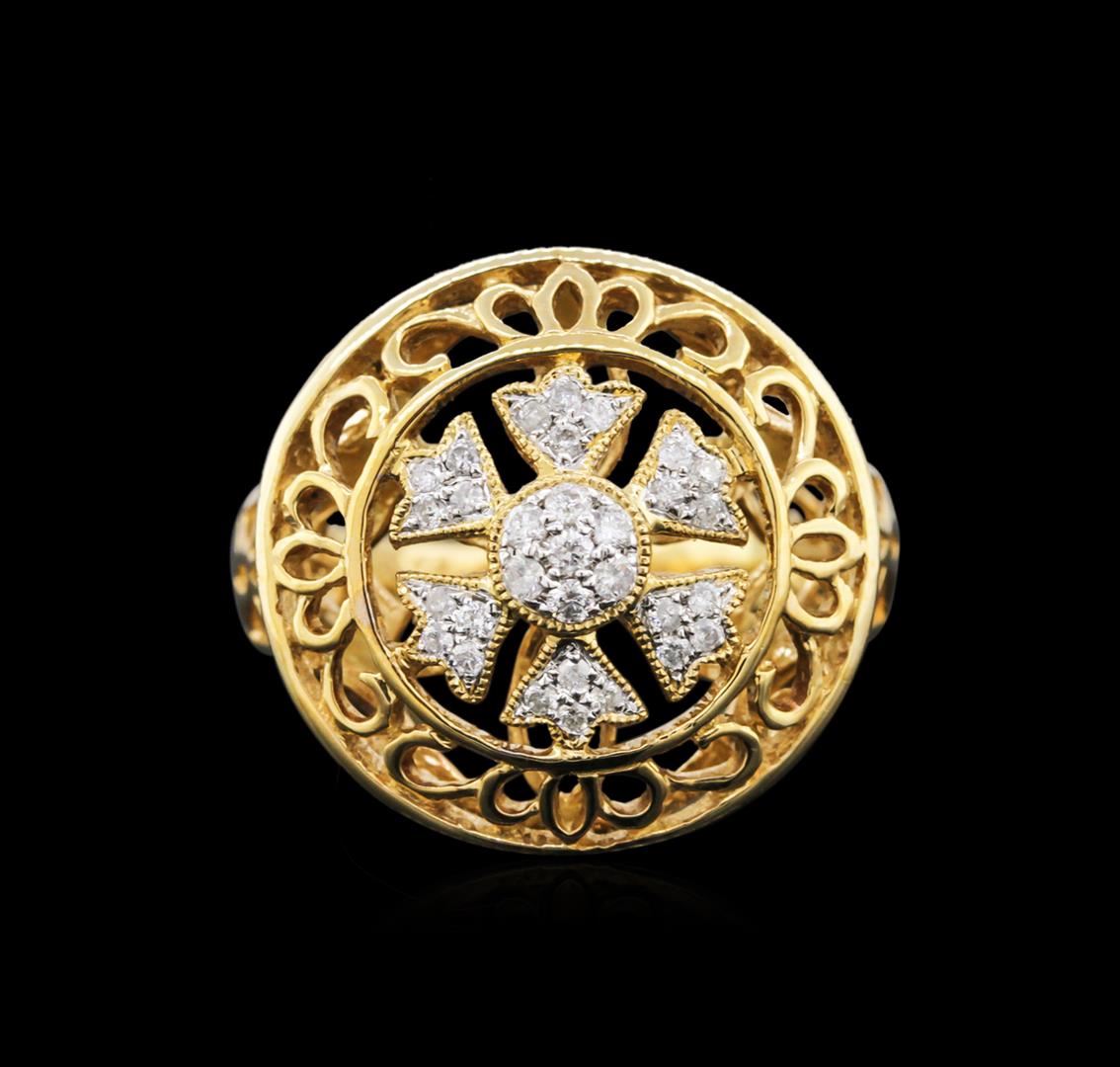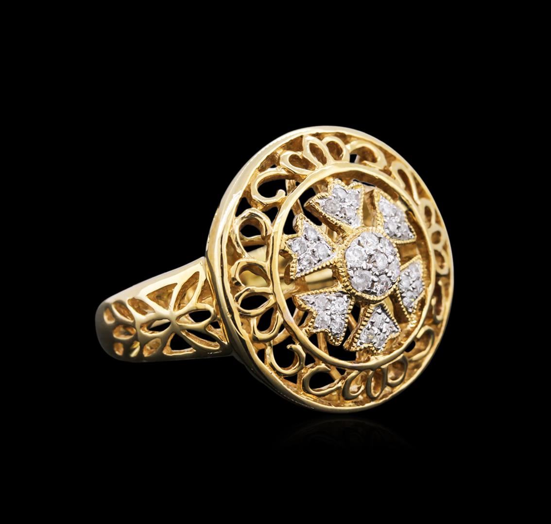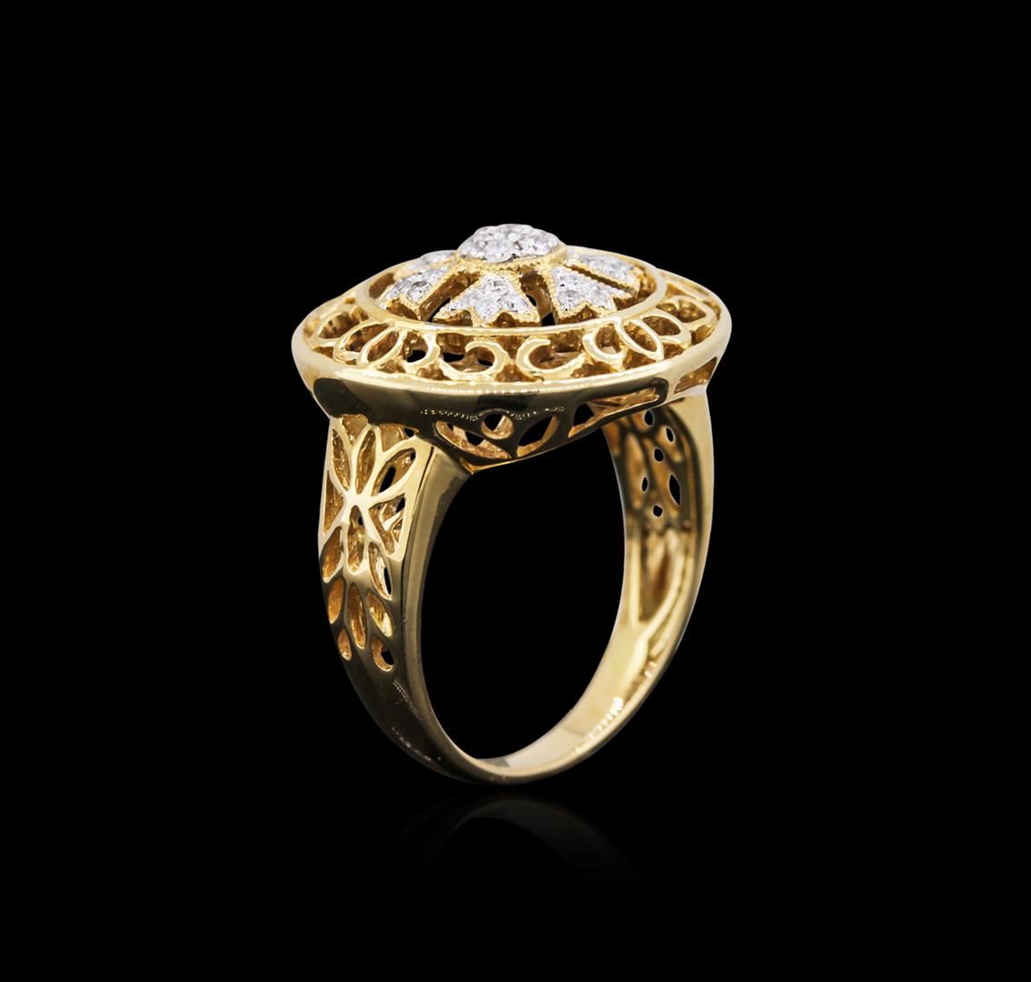 One ring featuring: 14KT yellow gold weighing 6.17 grams containing 31 round diamonds with a total weight of 0.22ct.