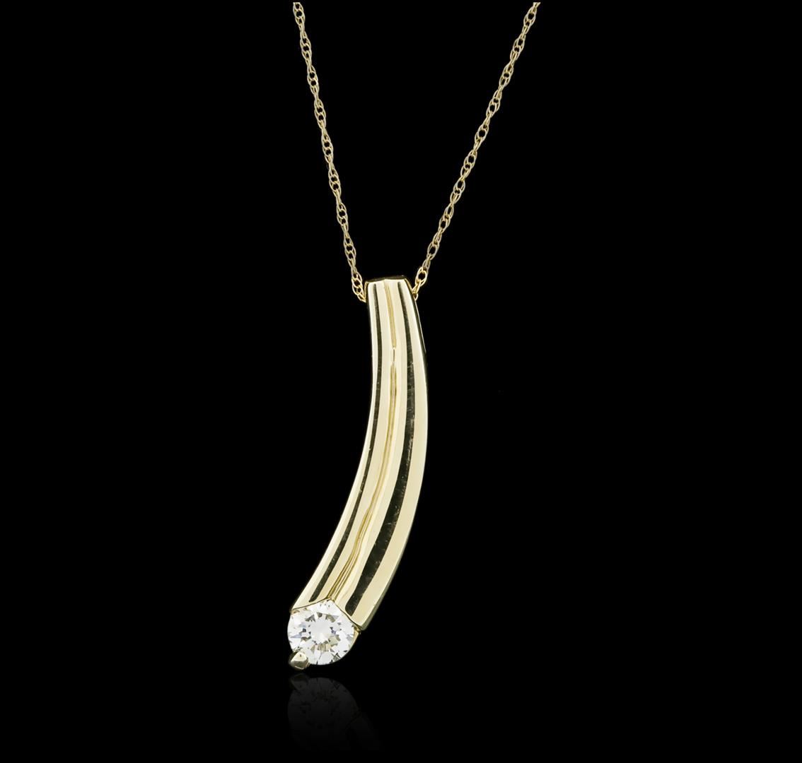 One fashion pendant with chain featuring: 14KT yellow gold weighing 4.50 grams containing one round diamond with a total weight of 0.30ct.