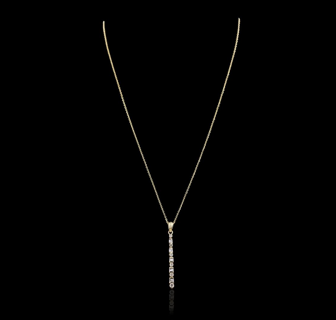One pendant with chain featuring: 14KT Yellow Gold with a total weight of 2.80 grams, and Diamonds with a total weight of 0.30ctw.