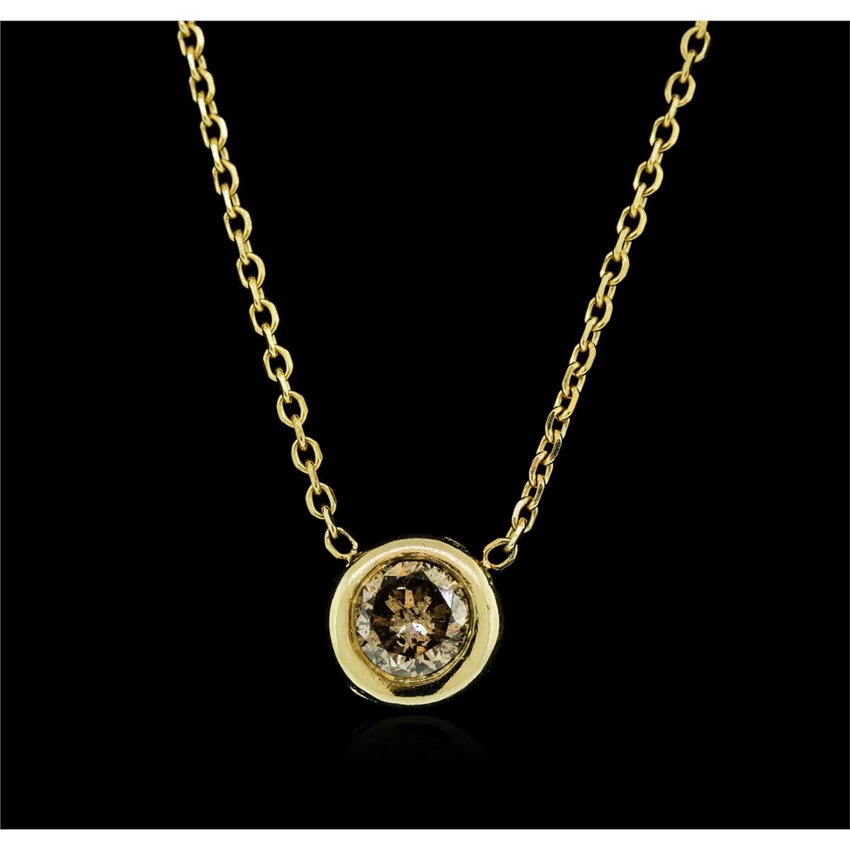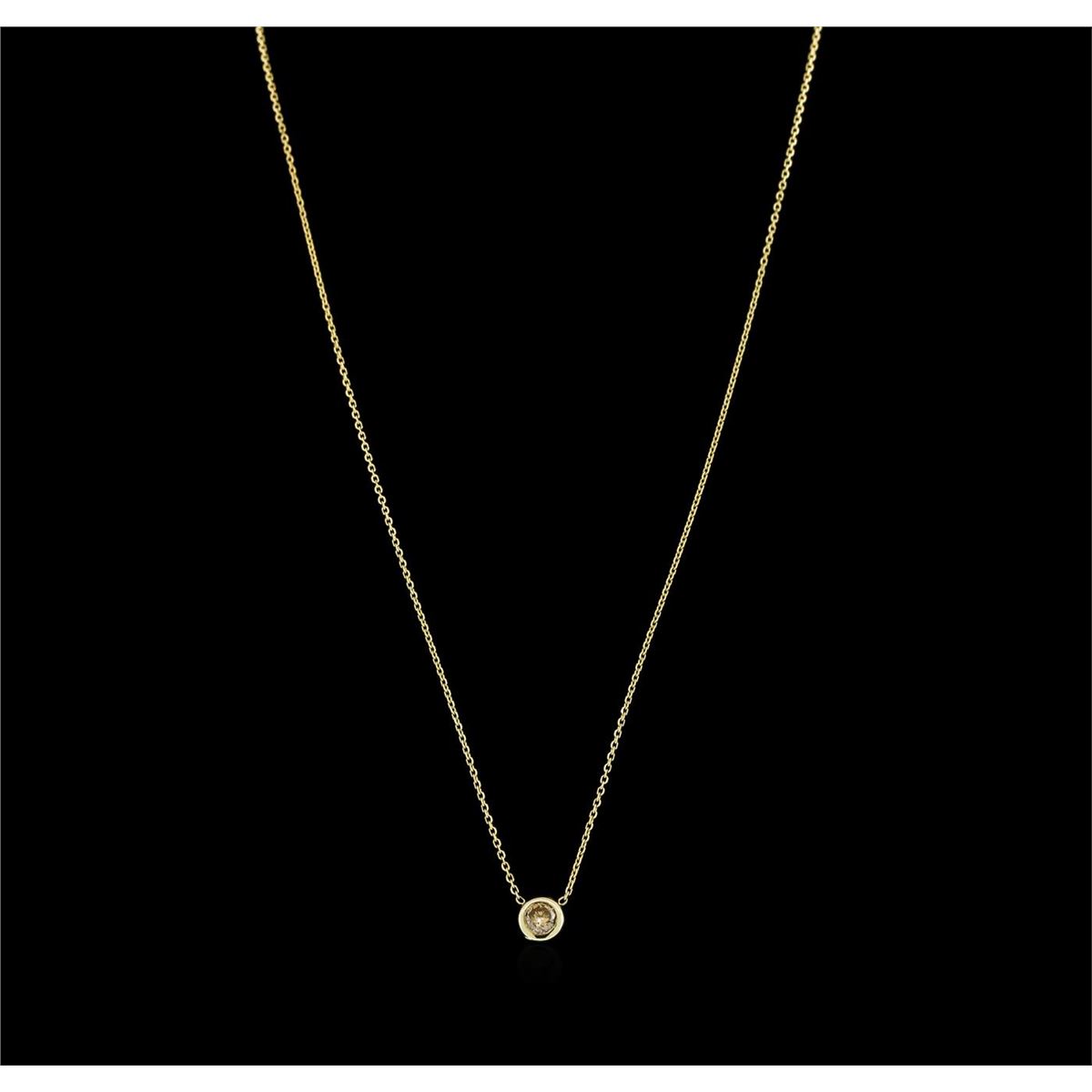 One solitaire necklace featuring: 14KT yellow gold weighing 1.90 grams containing one bezel set round brown diamond with a total weight of 0.34ct.