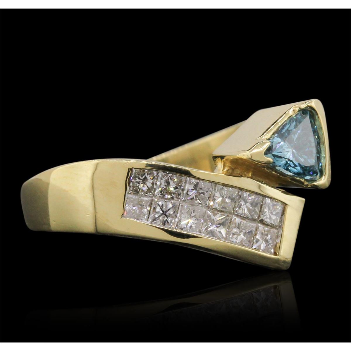 One ring featuring: 14KT Yellow Gold with a total weight of 8.40 grams, Blue Diamond with a total weight of 0.35ct, and Diamonds with a total weight of 0.88ctw.