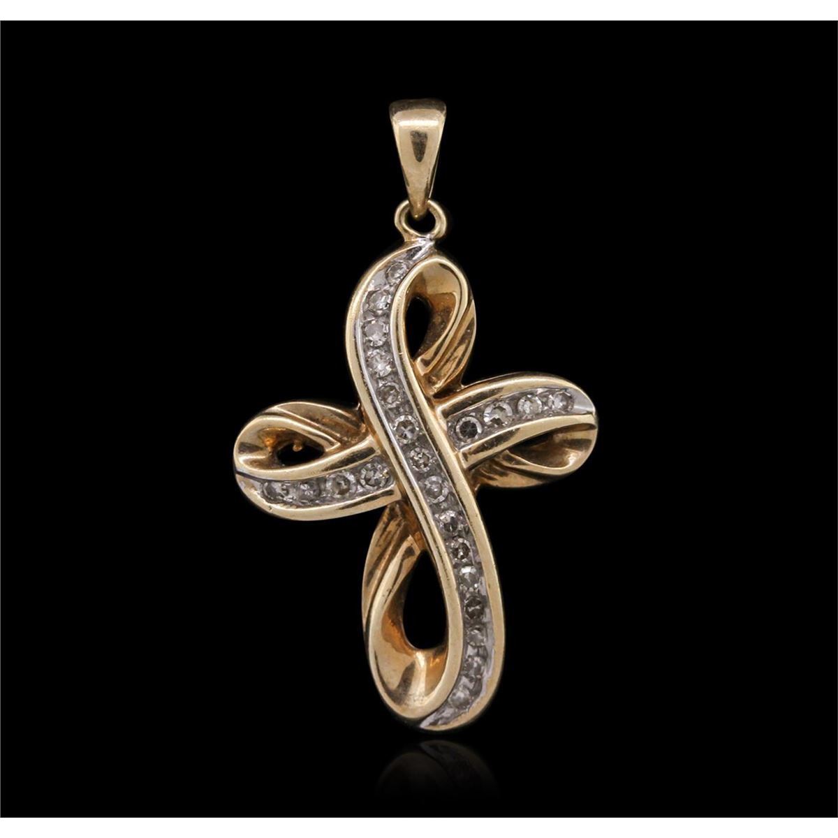 One cross pendant with chain featuring: 14KT yellow gold weighing 6.50 grams containing round diamonds with a total weight of 0.35ct.
