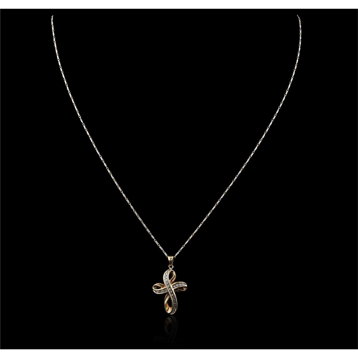 One cross pendant with chain featuring: 14KT yellow gold weighing 6.50 grams containing round diamonds with a total weight of 0.35ct.