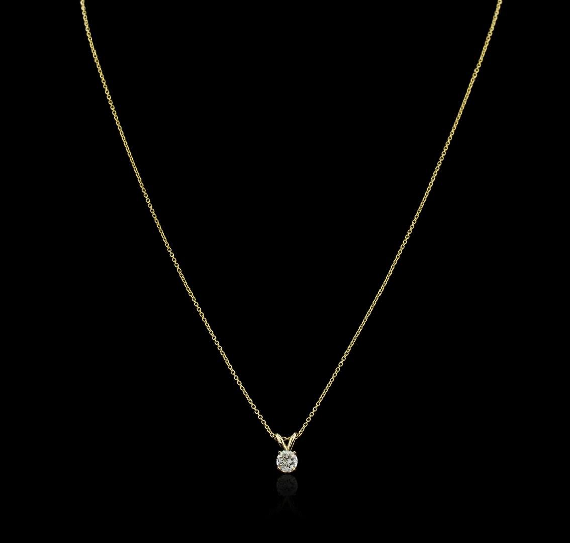 One solitaire pendant with chain featuring: 14KT yellow gold weighing 0.60 grams containing one diamond with a total weight of 0.40ct.