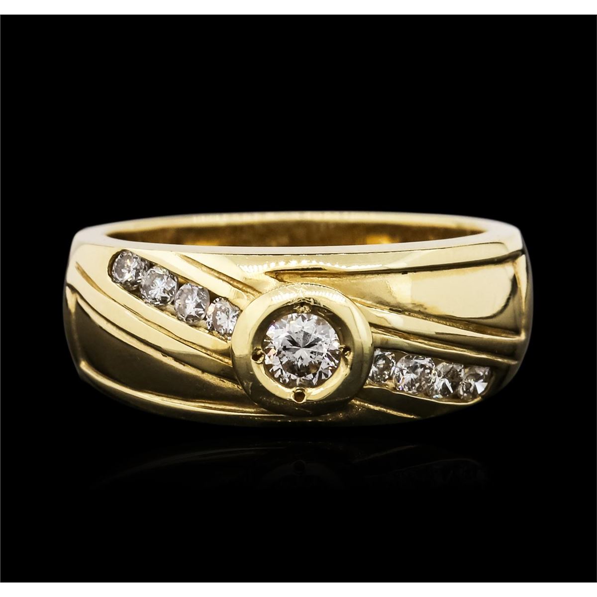One ring featuring: 14KT yellow gold weighing 5.60 grams containing one round diamond center stone with a total weight of 0.17ct and round diamonds with a total weight of 0.28cts.