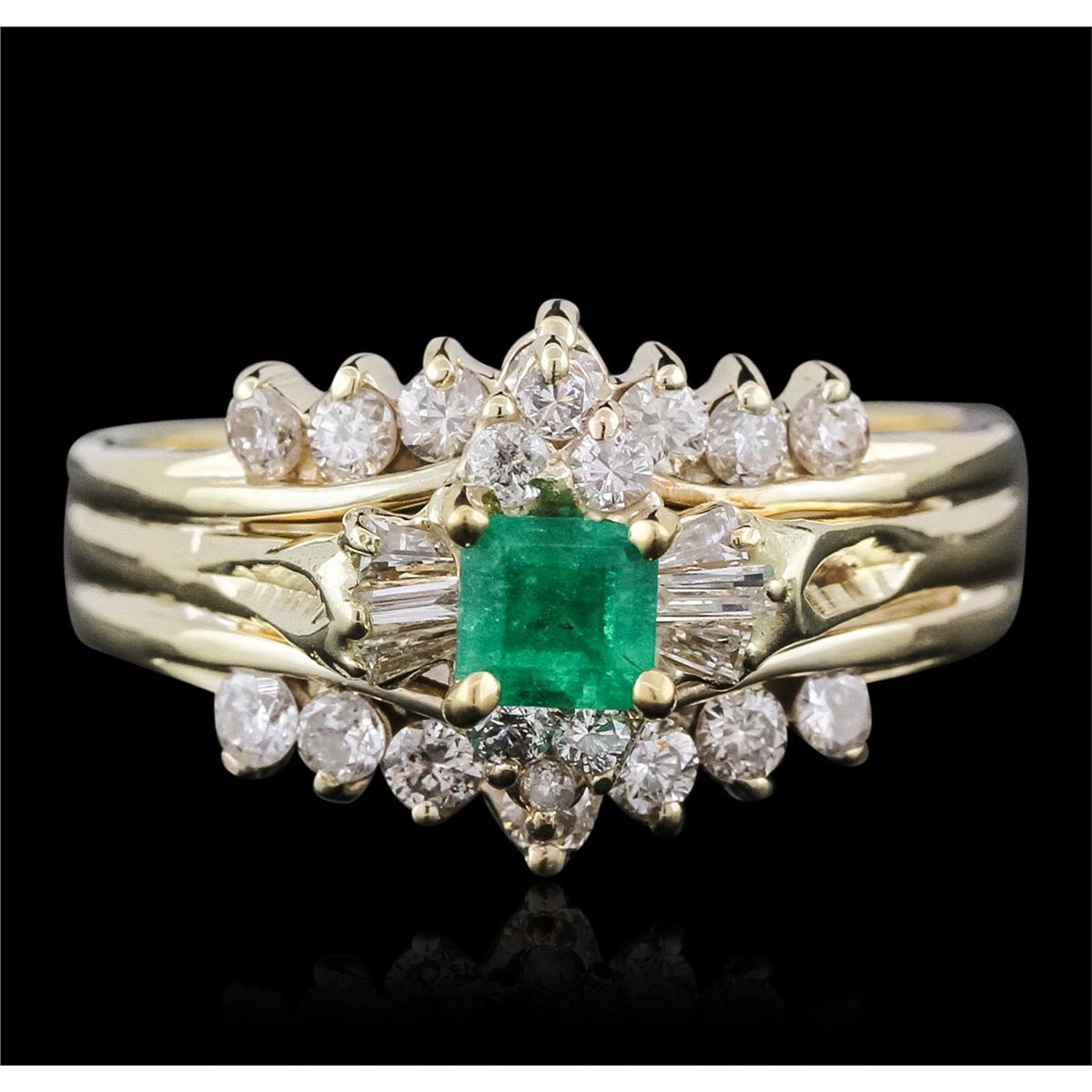 One ring featuring: 14KT Yellow Gold with a total weight of 7.20 grams, Emerald with a total weight of 0.50ct, and Diamonds with a total weight of 1.00ctw.