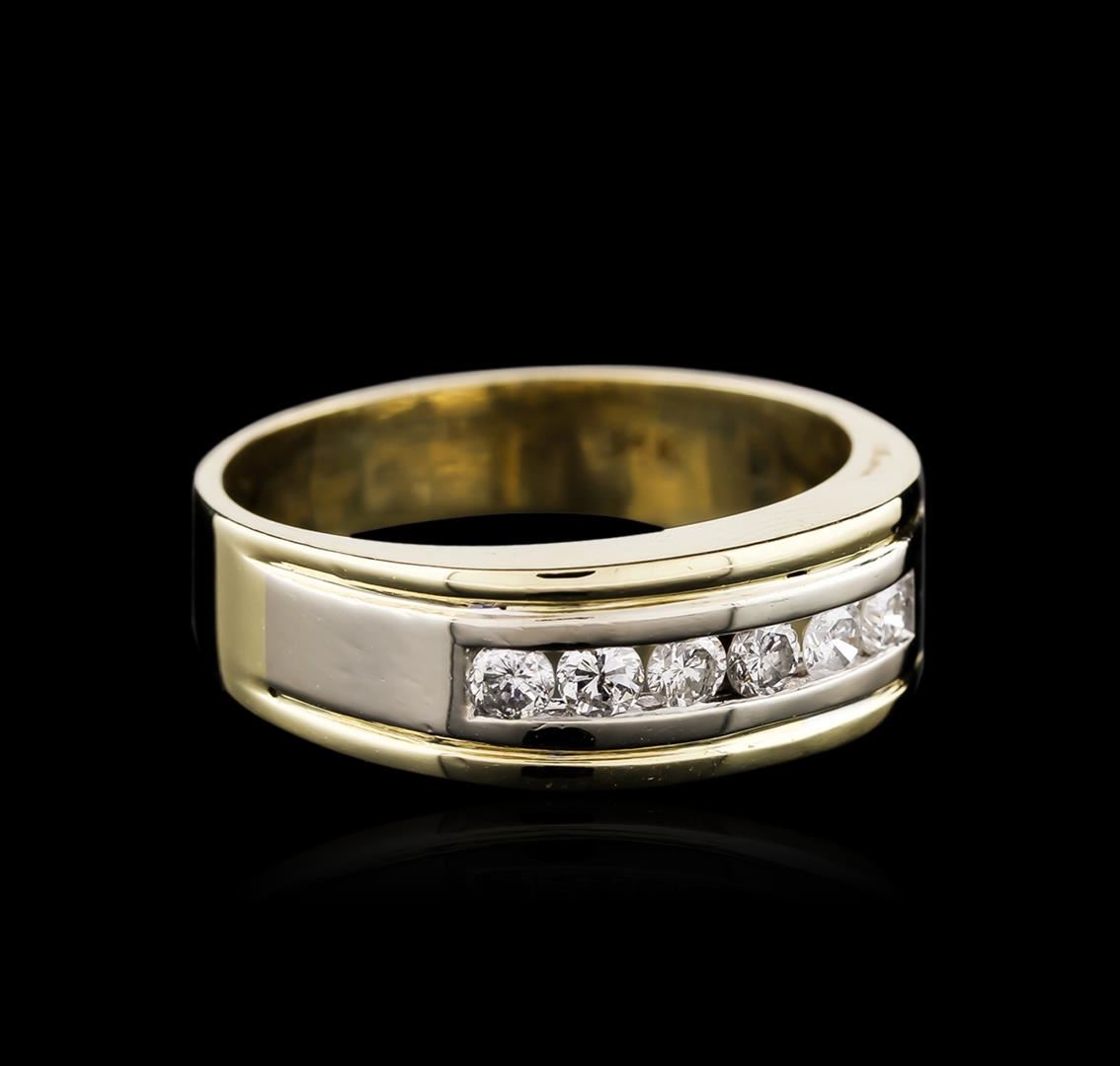 One gents ring featuring: 14KT yellow gold weighing 7.70 grams containing diamonds with a total weight of 0.50ct.