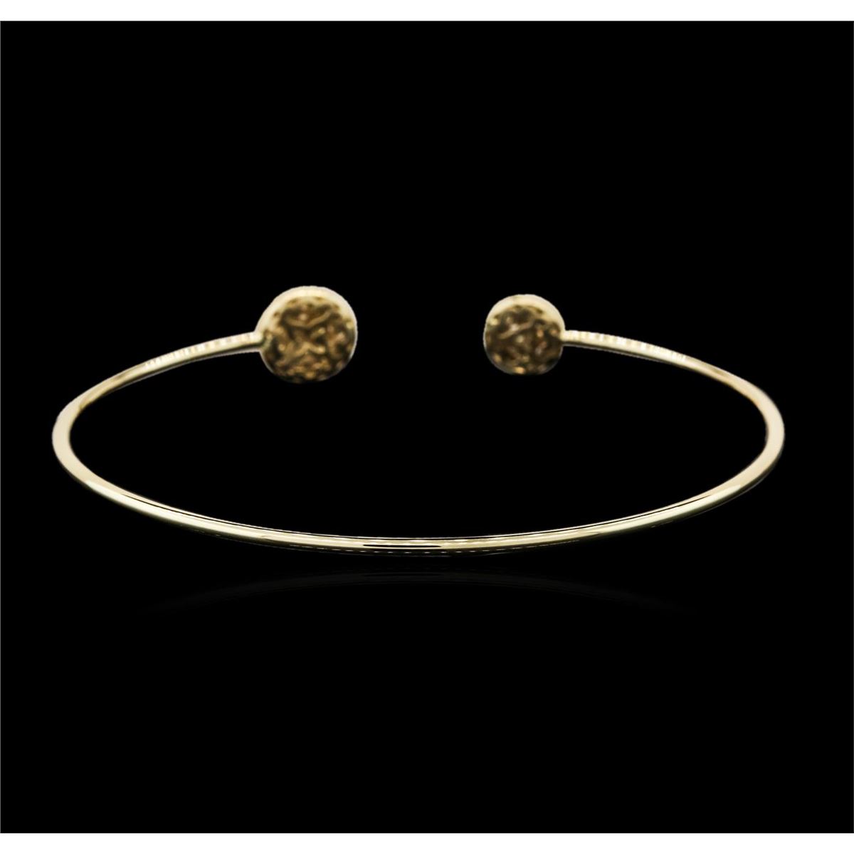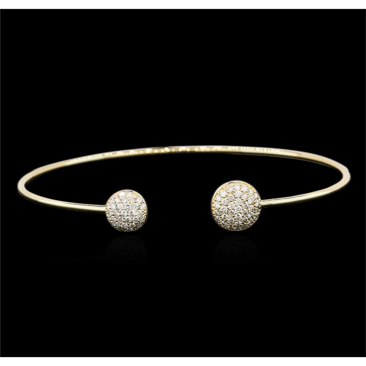 One electronically tested 14KT yellow gold ladies cast diamond bangle bracelet with a bright polish finish. Condition is new. Containing: Sixty-Eight prong set round brilliant cut diamonds, measuring 1.30 - 1.30 x 0.78mm (depth est.) approximate total weight of 68 Stones = 0.54ct. Clarity: SI-1 to I-1. Color: I - J, Cut is Good. All diamonds are graded in the mounting, unless otherwise stated. Total Weight of Diamonds 0.54ct. Total Weight of Bangle Bracelet 5.20 grams. GGL Appraised at $3,140.00.