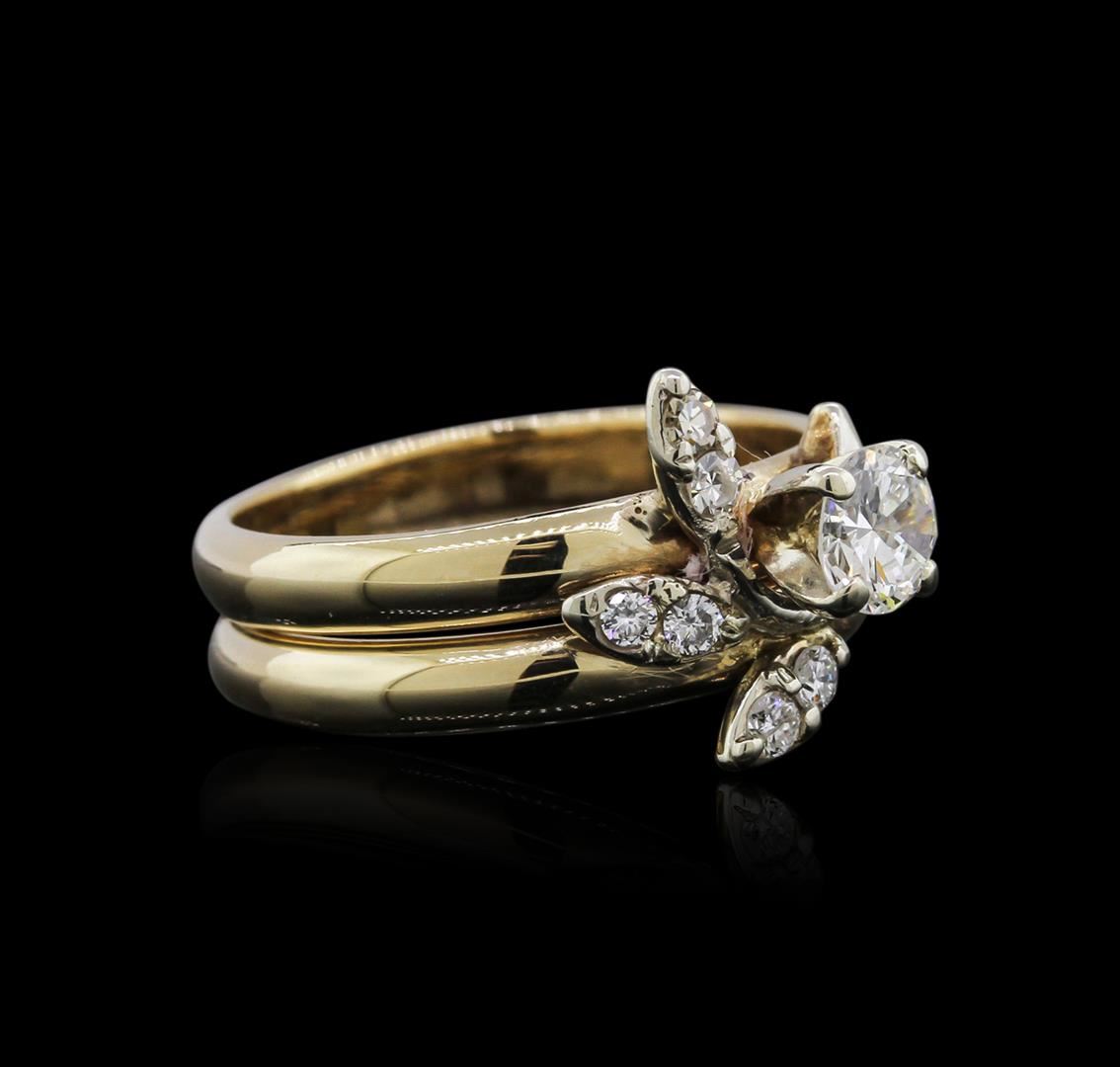 One ring featuring: 14KT yellow gold weighing 5.80 grams containing one diamond center stone with a total weight of 0.40ct and side diamonds with a total weight of 0.20ct.