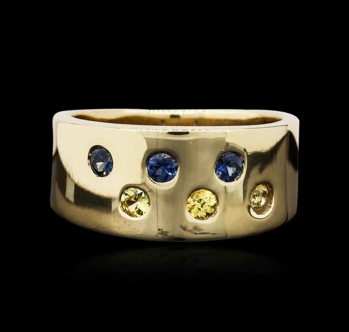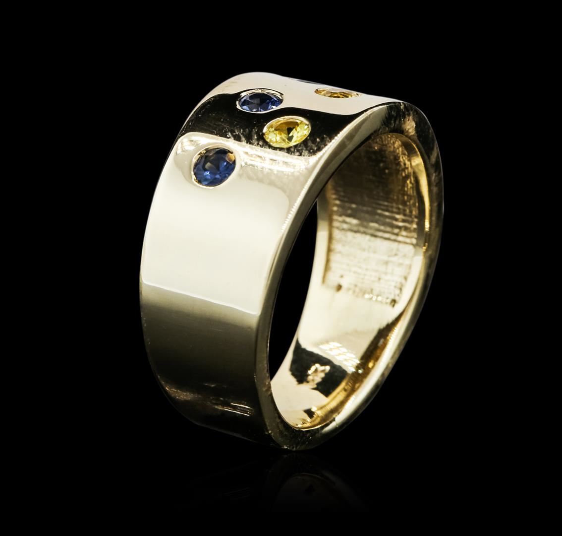 One ring featuring: 14KT yellow gold weighing 8.90 grams containing blue sapphires with a total weight of 0.30cts and yellow sapphires with a total weight of 0.30cts.
