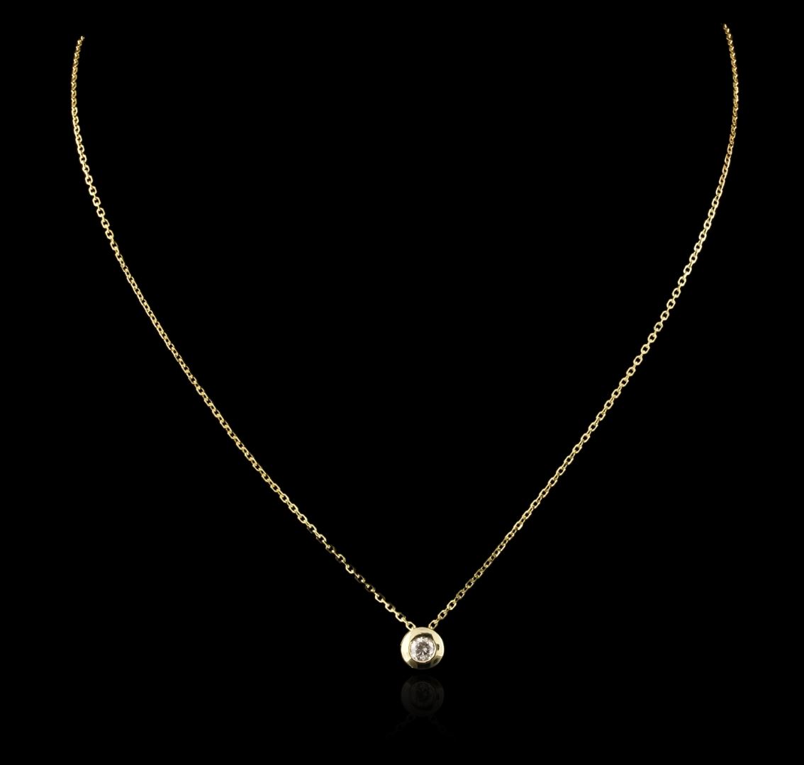 One pendant with chain featuring: 14KT yellow gold weighing 2.59 grams containing one bezel set round diamond with a total weight of 0.65ct.