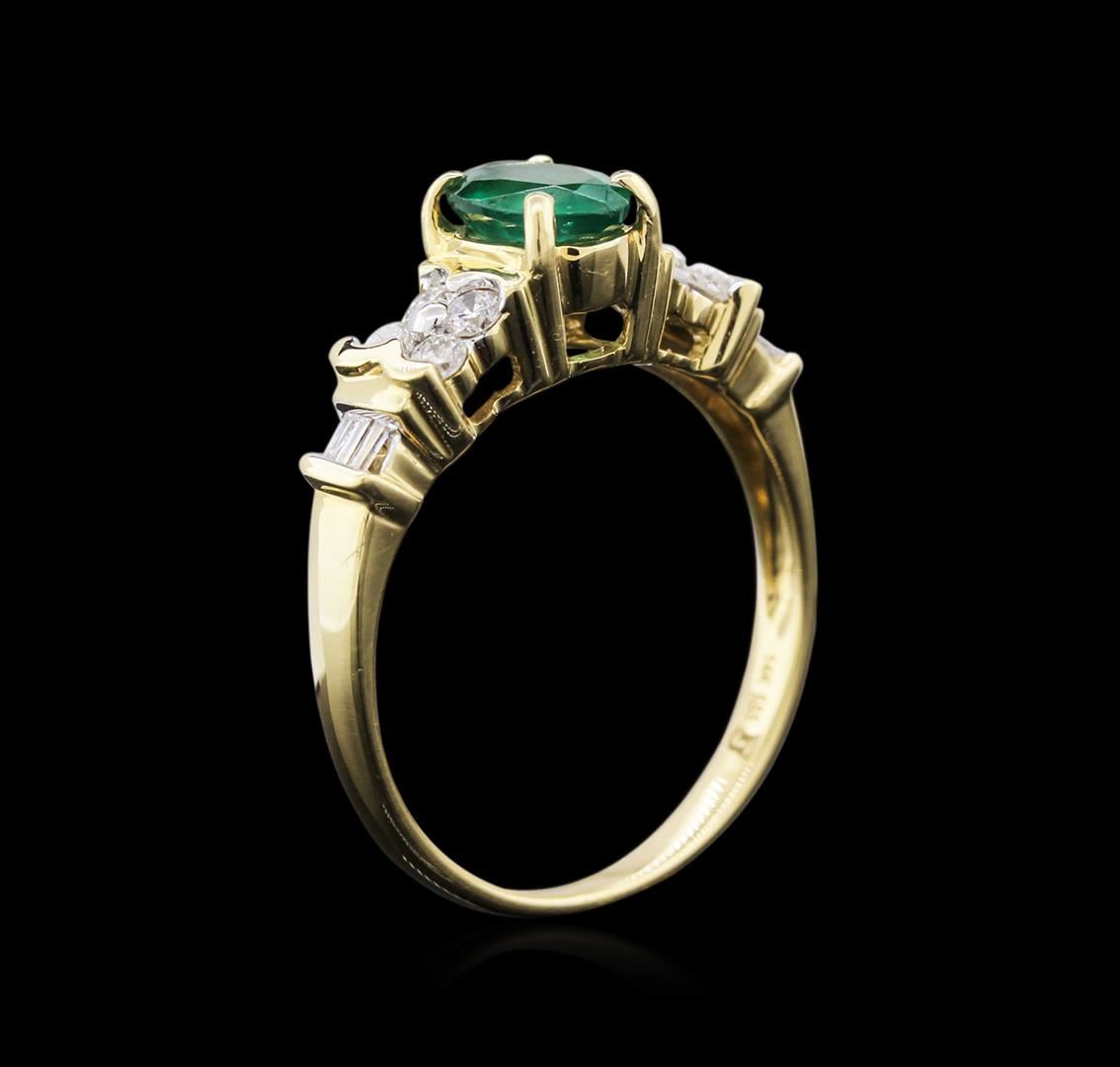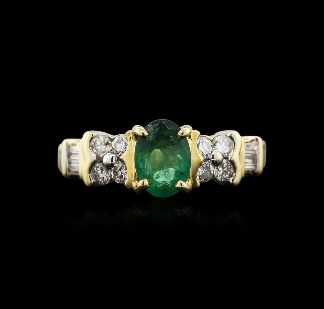 One ring featuring: 14KT yellow gold weighing 3.10 grams containing one emerald center stone with a total weight of 0.65ct and 14 baguette and round diamonds with a total weight of 0.35ct.