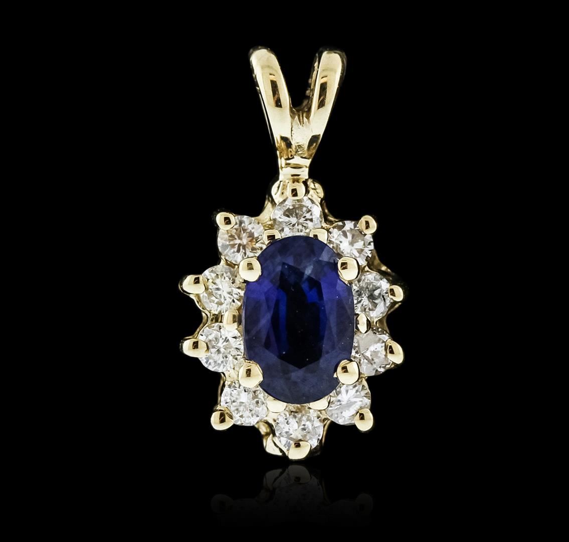 One pendant featuring: 14KT yellow gold weighing 1.21 grams containing one blue sapphire with a total weight of 0.70ct and diamonds with a total weight of 0.23ct.