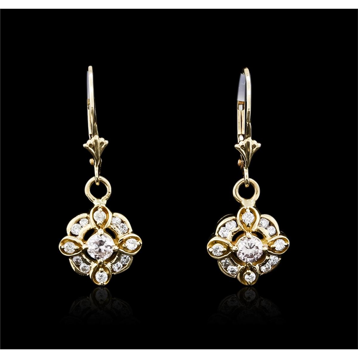 One pair of earrings featuring: 14KT yellow gold weighing 4.60 grams containing round cut diamonds with a total weight of 0.70cts.