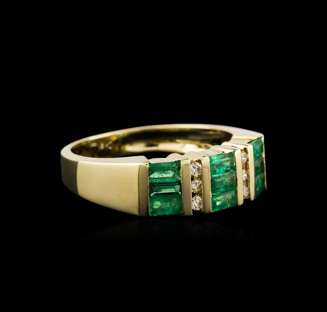One ring featuring: 14KT yellow gold weighing 3.70 grams containing emeralds weighing a total of 0.74ct and diamonds weighing a total of 0.10ct.
