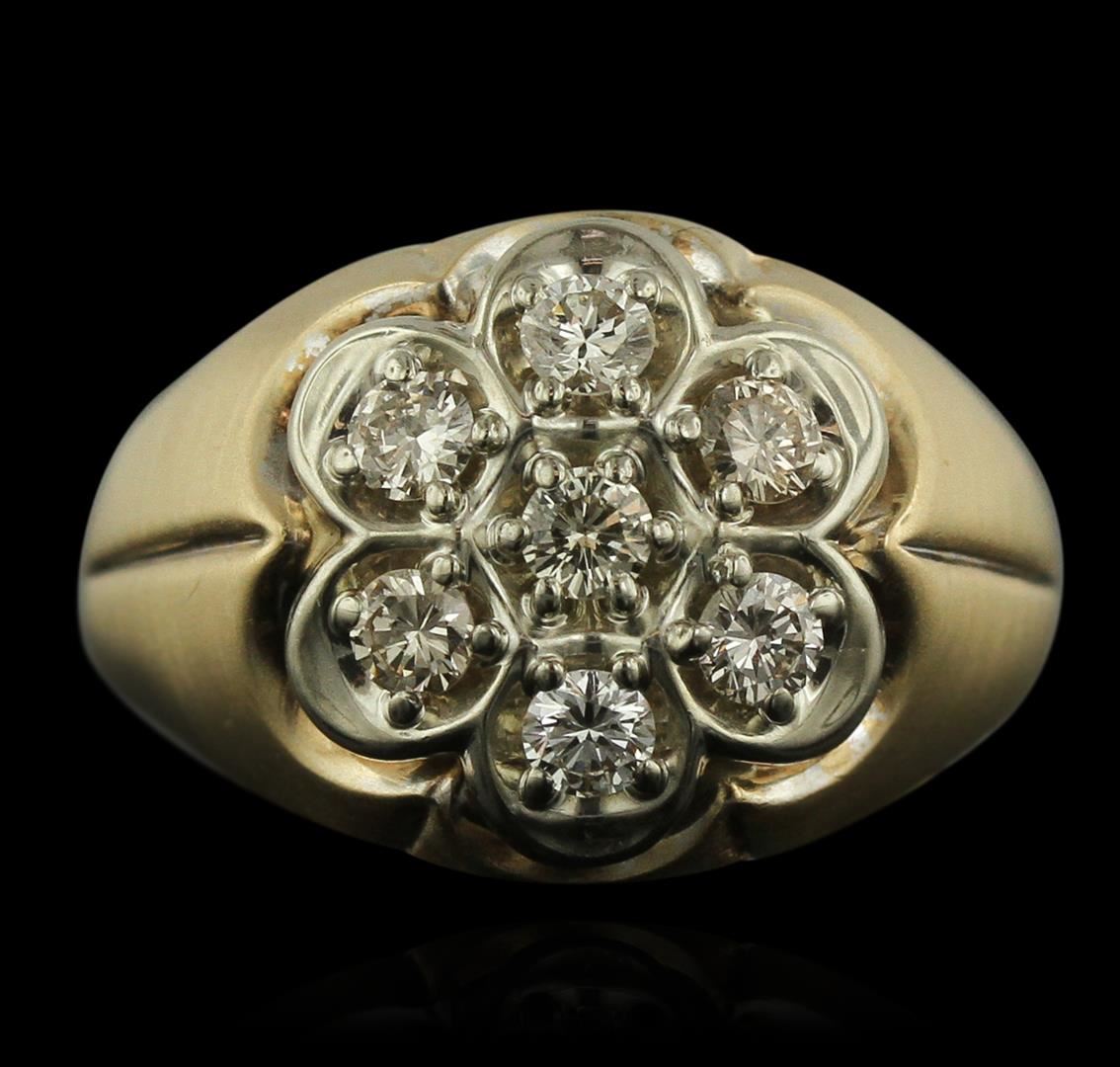 One ring featuring: 14KT Yellow Gold with a total weight of 5.06 grams, and (7) Diamonds with a total weight of 0.75ctw.