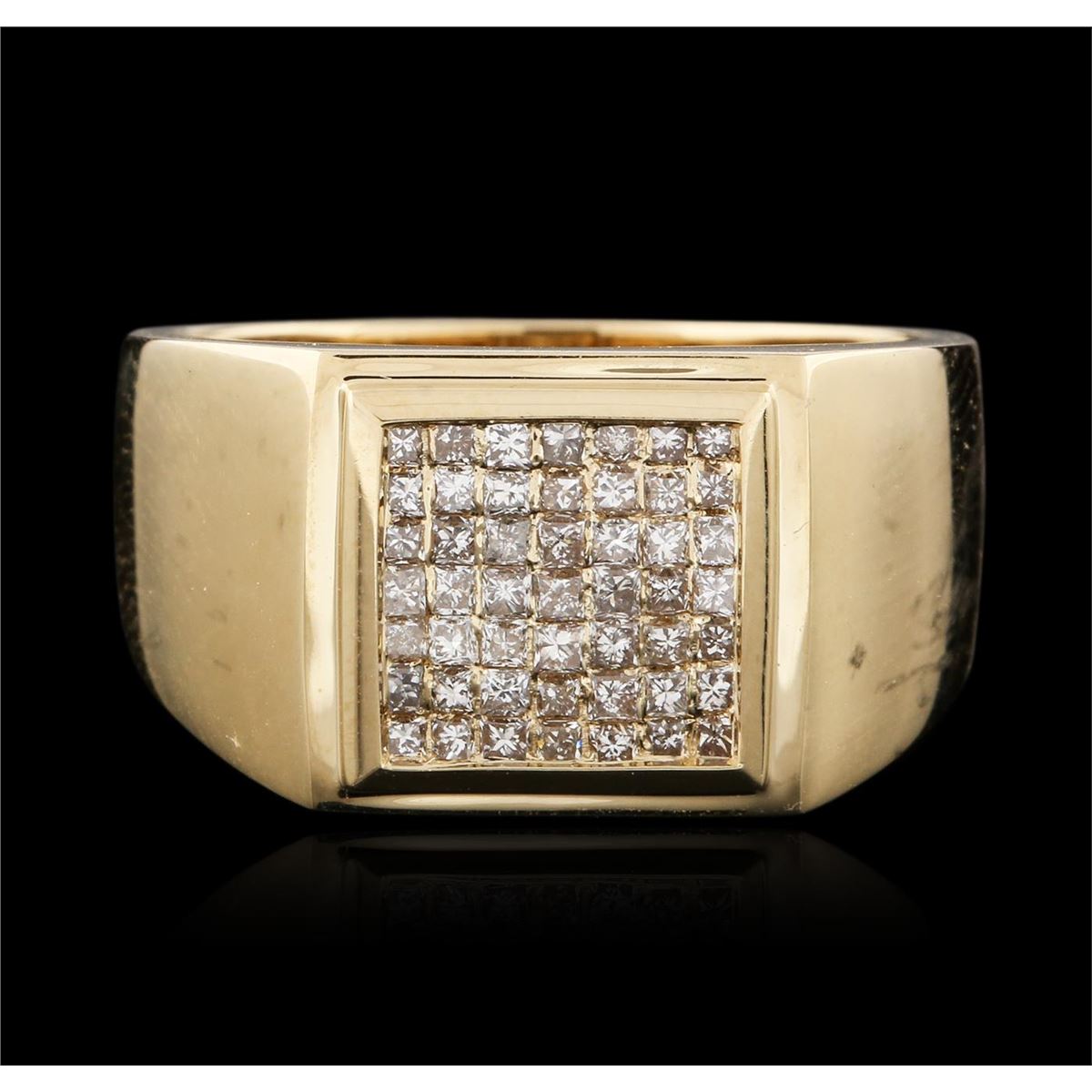 One gents ring featuring: 14KT yellow gold weighing 7.70 grams containing diamonds with a total weight of 0.75ct.