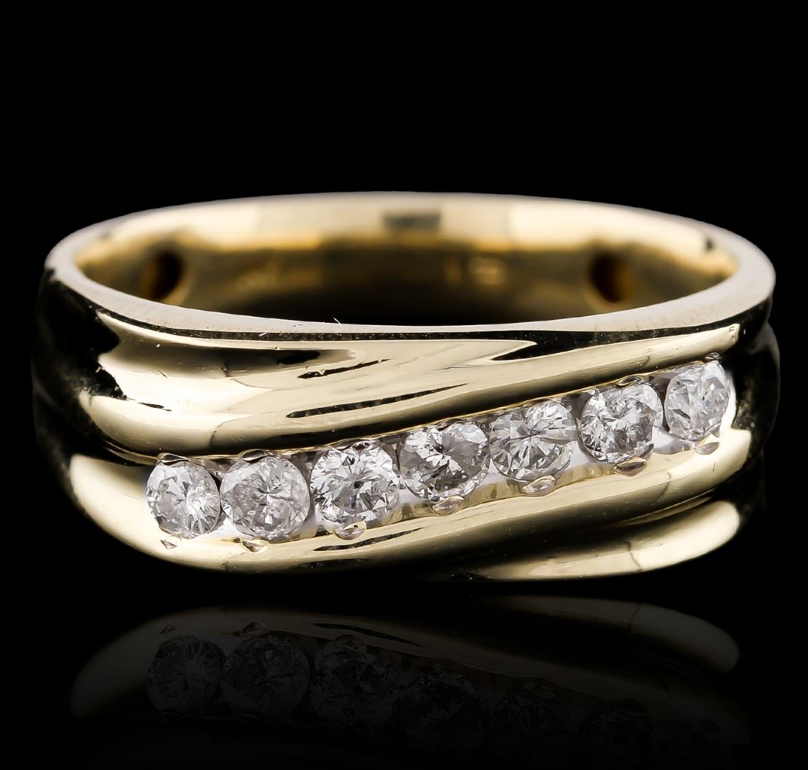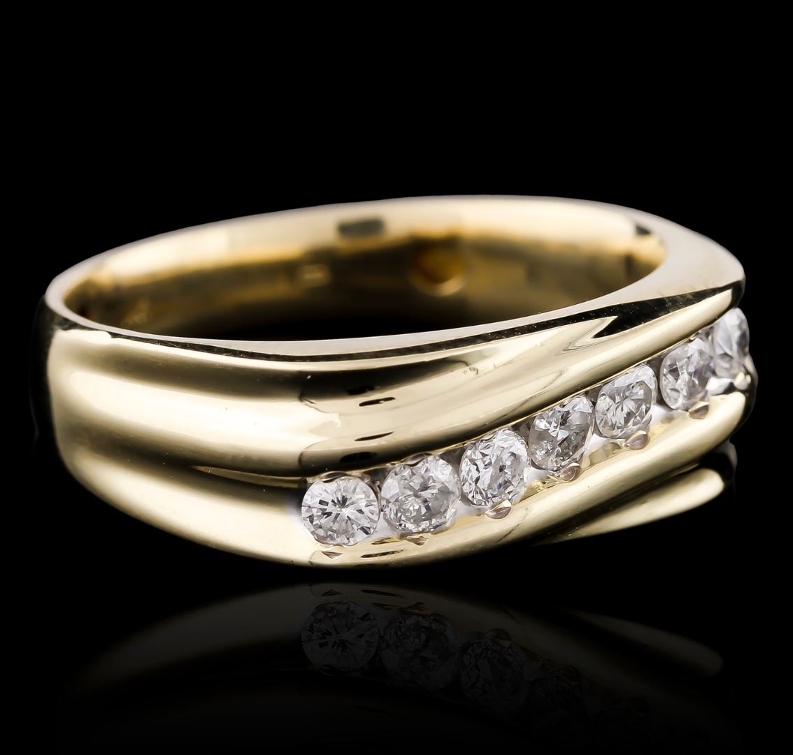 One gents ring featuring: 14KT yellow gold weighing 5.90 grams containing diamonds with a total weight of 0.75ct.