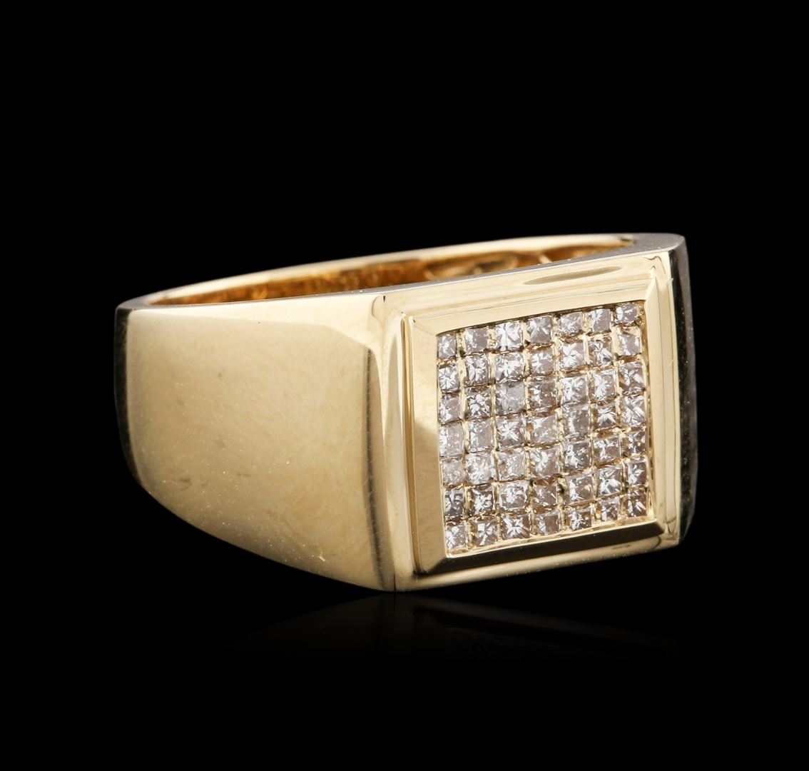 One gents ring featuring: 14KT yellow gold weighing 7.70 grams containing diamonds with a total weight of 0.75ct.